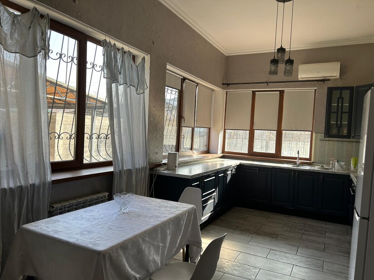Спокойное жилье для расслабленного семейного отдыха. через дом находиться (в пешей доступности) : 1) государственная большая школа, садики 2) базар, универмаг Дом находиться в самой лучшей локации в Фабричном, вложений не требует, теплая, все сделано основательно, в квартире еще запах свежего ремонта качество воздуха TOP (15AQI) (жители города оценят) п. Фабричный имеет 13 детских лагерей, 3 водопада, не далеко от гор.