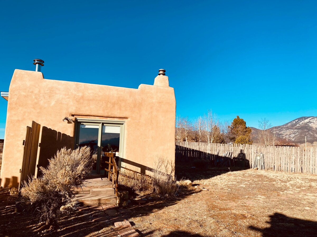 Teach aíochta dhá stór atá neadaithe i sléibhte Sangre de Cristo. Suite go foirfe 20 nóiméad ó Taos stairiúil agus 15 nóiméad ó Taos Ski Valley. Seomra leapa nua - athchóirithe, 2 sheomra folctha ina bhfuil na saoráidí go léir, lena n - áirítear cosáin fánaíochta amach ó do dhoras. Leaba bhanríona, agus leaba thoilg sa phríomhsheomra leapa agus leaba thoilg thuas staighre tá sé oiriúnach do lánúin le leanaí...nó níos fearr fós saoire rómánsúil do bheirt le sorn adhmaid oibre agus radhairc 360º de ghleann Valdez agus na sléibhte máguaird. Príobháideach.