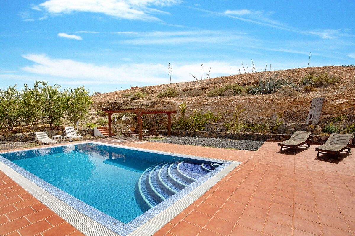 Lonnaithe i gcrios eisiach de Lajares díreach faoin mbolcán ‘Calderón Hondo '. Tá dhá sheomra leapa sa teach, seomra folctha nasctha, leithreas, seomra stórála, cistin, seomra suí. Deic adhmaid le cithfholcadán lasmuigh agus linn snámha théite (6 x 2,5m). Dearadh íostach le gloiniú fairsing a sholáthraíonn radhairc iontacha do cheann de na tírdhreacha is áille i dtuaisceart Fuerteventura.