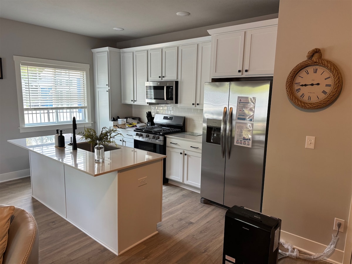 The ultimate family retreat awaits at this 3BR townhouse, boasting captivating marina views. Unwind in comfort with two restful king beds for a good night's sleep after family adventures. Explore charming cafes, exciting water sports, golfing, and Silver Beach. Embark on riverside strolls along the paved walkway, let the kids splash in the inviting heated pool, and stay seamlessly connected with fast Wi-Fi.
