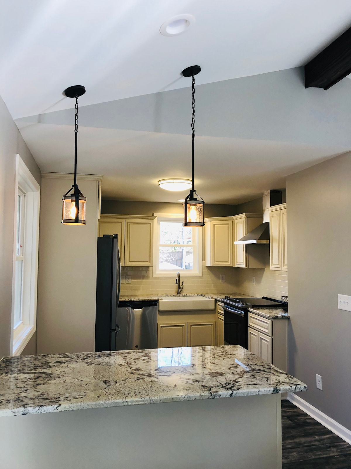 Bí i do chónaí go mór san éalú síochánta seo ó Kerr Lake! Beidh rochtain agat ar leibhéal iomlán níos ísle ár dteach, ina bhfuil máistirshraith agus spá iomlán cosúil le seomra folctha. Tá dhá leaba shingil suite díreach taobh amuigh den phríomhsheomra - foirfe do theaghlaigh. Beidh cistinéad tógtha saincheaptha agat le countertops adhmaid álainn agus stáisiún caife spraoi. Nice meánmhéide, seomra suí Super cluthar le teallach agus 58"teilifíse. Téann doras sleamhnáin chuig an spás lasmuigh, do thearmann suaimhneach ~ Tar chun cuimhní cinn a dhéanamh!