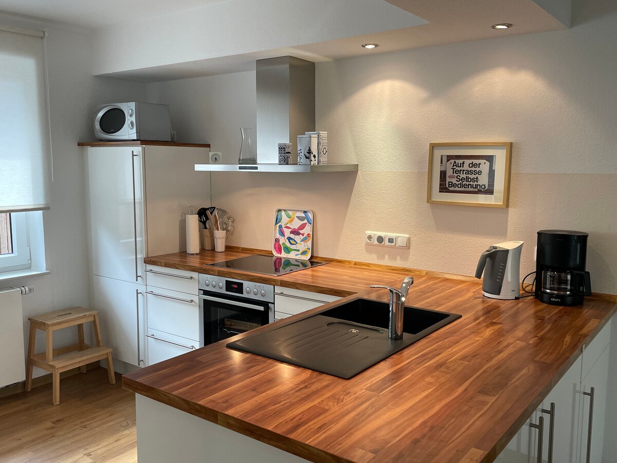 Árasán i Dangast: Codlaíonn dhá cheann. Siúlóid ghearr go dtí an trá. Ar an mbunurlár tá an seomra suí ina bhfuil cúinne teolaí tolg chun do scíth a ligean, ardán a bhfuil aghaidh ó dheas air le cosaint na gréine agus cathaoireacha suaimhnis gréine. Sa chistin tá miasniteoir agus meaisín níocháin chomh maith leis an ngnáth - threalamh le sorn, oigheann agus cuisneoir. Thuas staighre tá an seomra leapa agus an seomra folctha ina bhfuil cithfholcadán. Rinneadh athchóiriú iomlán ar an árasán in 2017. Tá gach rud nua agus réidh duit.