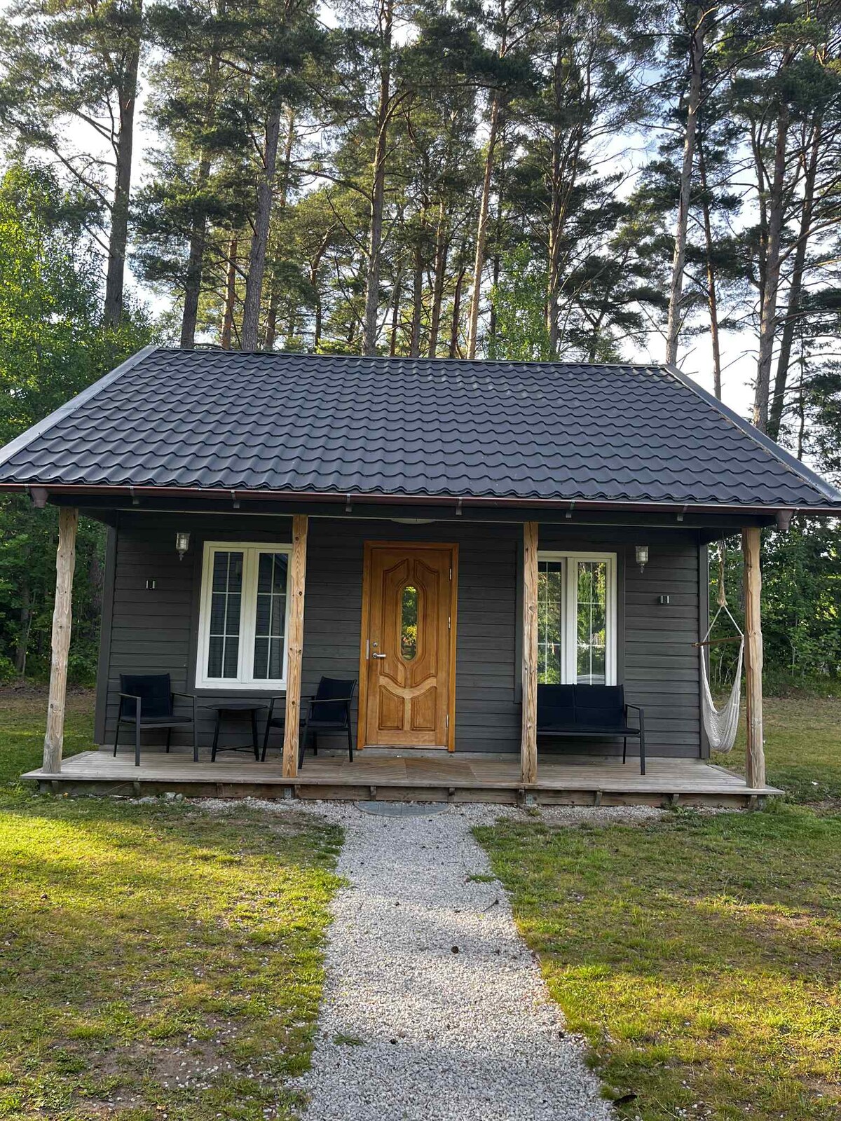 Cábán beag i suíomh tuaithe 8 km ó Visby. Tá cistinéad, teilifíseán cliste, cithfholcadán agus leaba dhúbailte chompordach feistithe sa teachín. Chun na leapacha eile sa chábán a bhaint amach, tá staighre chuig an urlár uachtarach ar an taobh amuigh den teach. Tabhair faoi deara nach bhfuil aon leithreas thuas staighre, mar sin caithfidh tú dul tríd an taobh amuigh den teach chun dul chuig an leithreas. Lasmuigh den teachín tá paitió níos lú, beárbaiciú agus áiteanna móra le haghaidh súgartha. Tá línéadach tí agus tuáillí san áireamh i gcíos.