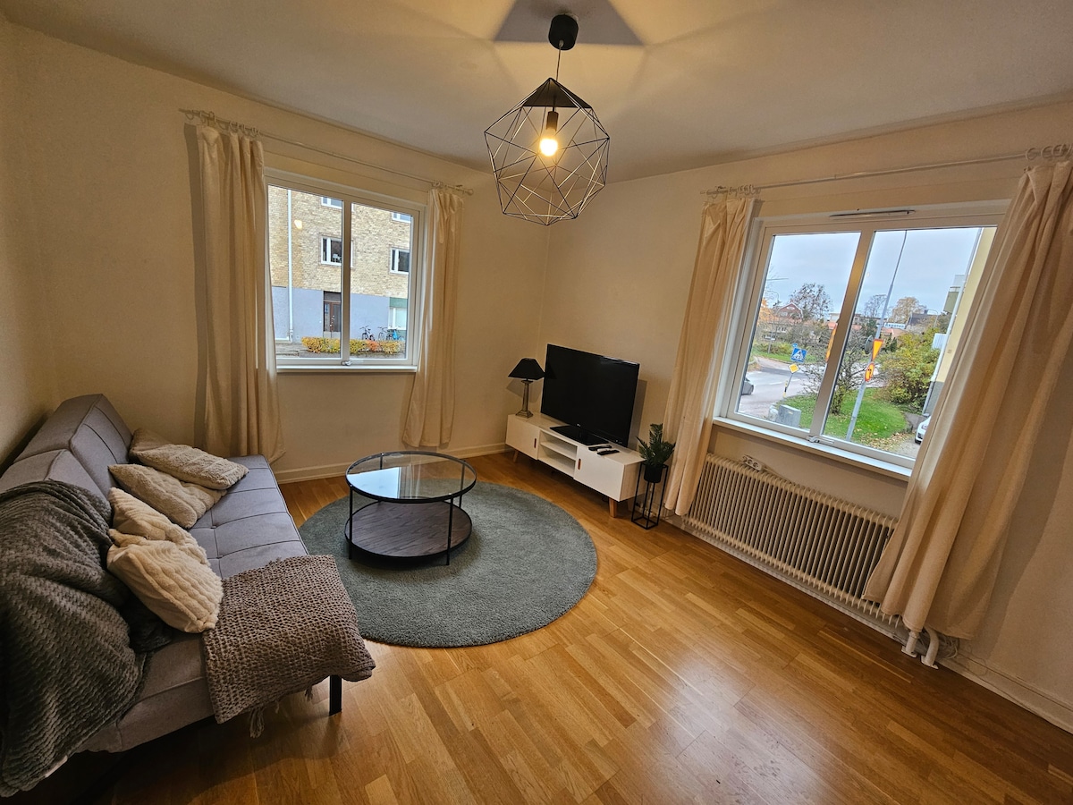 Árasán 2 sheomra leapa i lár Västerås. Foirfe do 1 -4 aoi. Tá an t - árasán 45 méadar cearnach agus tá sé suite ar an dara hurlár inár villa príobháideach. Tá seomra leapa/seomra suí, cistin, seomra folctha agus do bhalcóin féin ann agus radharc ar ár ngairdín. Tá an t - árasán feistithe le gach rud a bheidh uait le haghaidh tréimhsí fanachta gearra agus fada araon. Tá leaba dhúbailte (140 cm) agus leaba thoilg ann ina bhfuil spás do bheirt, atá sa seomra céanna.