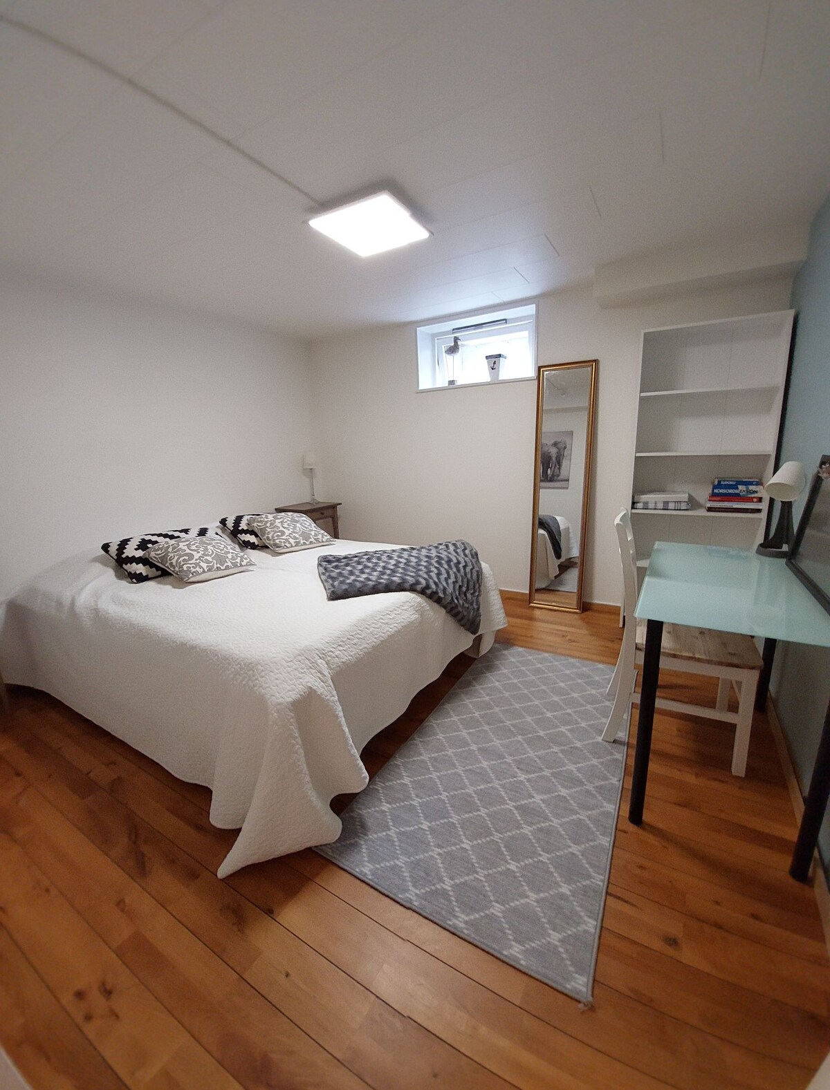 Lóistín atá suite go lárnach. Lóistín príobháideach le bealach isteach príobháideach agus cithfholcadán agus leithreas príobháideach. Cistin shimplí le gach rud atá uait. Brabhsáil déantóir caife, micreathonnán, sorn/oigheann beag, uirlisí, gloine agus poirceallán. Chomh maith le cuisneoir/reoiteoir srl. Leaba dhúbailte amháin 180 cm agus leaba thoilg 140 cm. Níl bileoga ná tuáillí san áireamh. Tabharfaidh an bus go lár an bhaile thú i gceann thart ar 10 nóiméad. Stad bus 3 nóiméad ón áit chónaithe. Siúlóid ghearr ar shiúl tram freisin. Tabharfaidh tralaí 1 go dtí an stáisiún lárnach agus tralaí 5 go Liseberg thú gan athrú. Rochtain ar ghairdín le beárbaiciú.