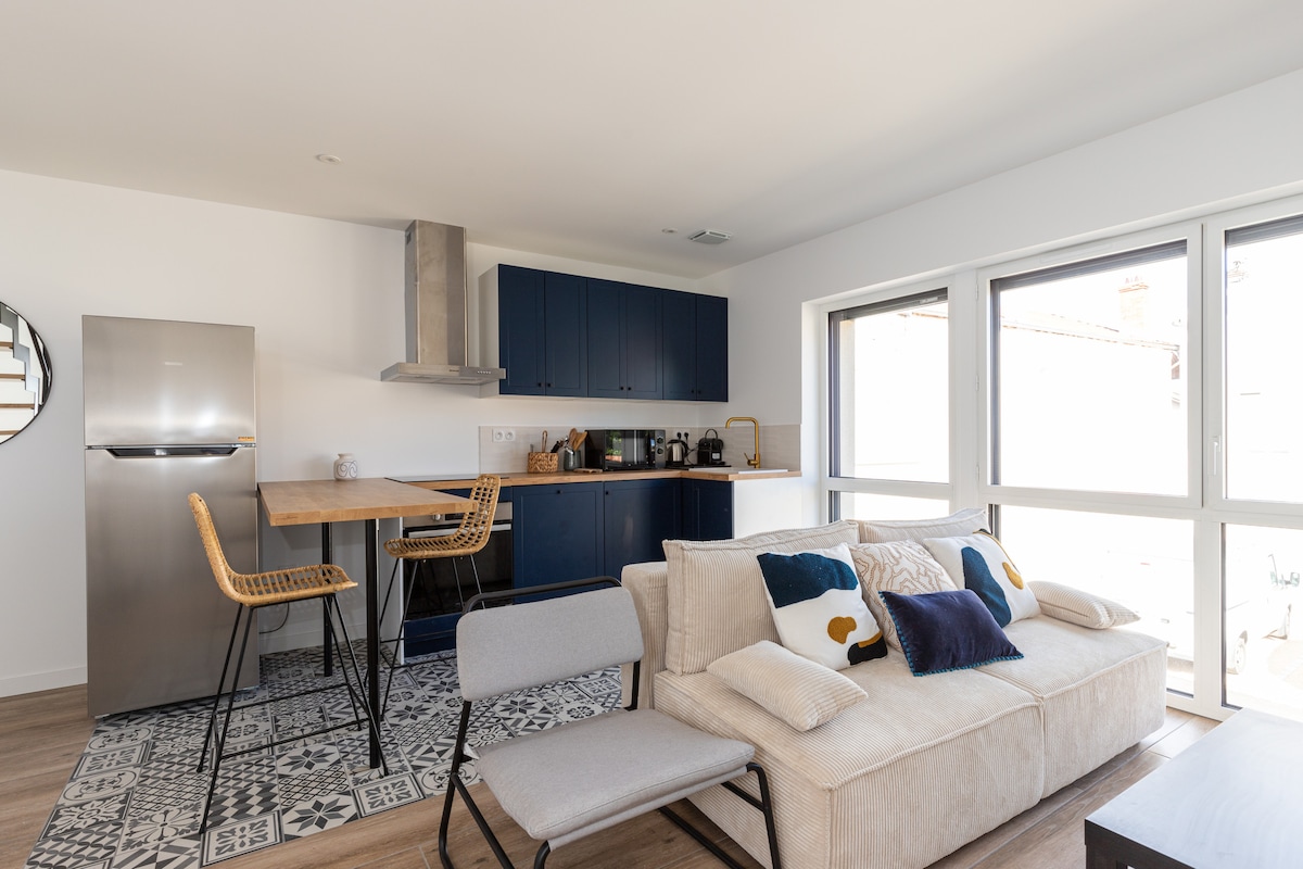 Árasán deartha galánta atá feistithe go hiomlán agus atá athchóirithe go hiomlán. Tá sé suite i gceantar Jean - Macé - Universités, gar do stáisiún traenach Part - Dieu, Perrache agus Place Bellecour. Tá sé ceangailte go maith (siúlóid Metro, tram agus bus 5 nóiméad). Compordach: Seomra suí ina bhfuil cistin fheistithe, seomra leapa ar leith ina bhfuil bloc aerchóirithe. Wi - Fi, HD TV, meaisín níocháin, cuisneoir, oigheann, micreathonnán, sorn ionduchtaithe, meaisín Nespresso, citeal, triomadóir gruaige, clár iarnála agus iarann, sábháilte)