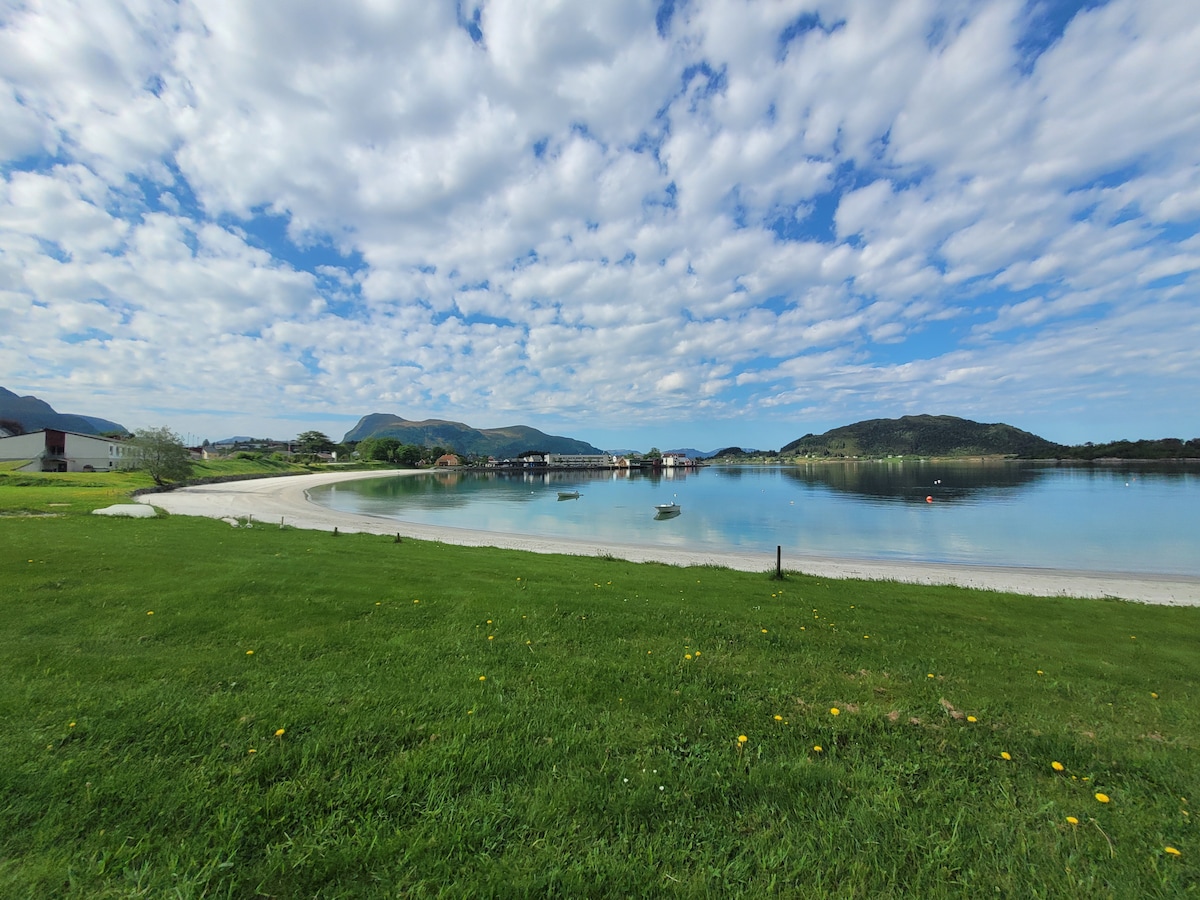 Fáilte chuig teach na trá ag deireadh Ervik - ag bun an Rinn Thiar. Anseo is féidir leat taitneamh a bhaint as torann toinne agus aer úr na farraige le radhairc uathúla ar an bhfarraige gan deireadh, agus sléibhte agus an dúlra iontach thart air. Ó leac na fuinneoige is féidir leat féachaint ar na surfálaithe sna tonnta nó staidéar a dhéanamh ar shléibhte géara. Ón áit seo is féidir leat léim díreach isteach san fharraige le wetsuit agus clár surfála. Díreach síos an doras is féidir leat cosáin fánaíochta a leanúint go dtí an radharc ag Hushornet, Hovden iontach nó an babhta a thabhairt timpeall Ervikvatnet.