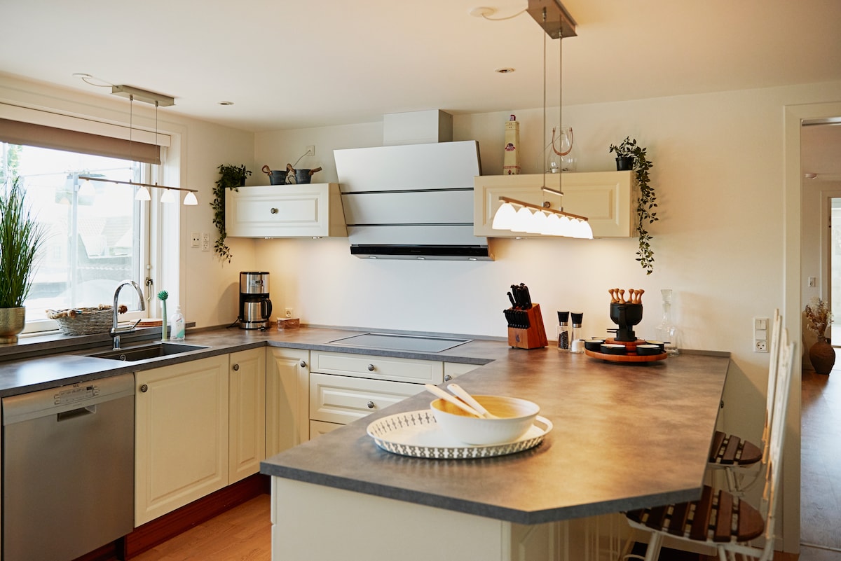 Fáilte go dtí ár dteachín teolaí le radhairc iontacha ar thírdhreach dumhach chósta na Mara Thuaidh! Lig do scíth os comhair an teallaigh dóite adhmaid, bain sult as sócamais na Danmhairge sa chistin oscailte agus tabhair uaireanta suaimhnis duit féin sa sabhna nó sa tobán te adhmad-bhreoslaithe sna dumhcha. Áit fhoirfe chun éalú ó gach rud agus áilleacht an cheantair a bhlaiseadh. Táimid ag tnúth le fáilte a chur romhat! Foirfe do ghaothshurfálaithe freisin. In aice leis an láthair surfála gaoithe.