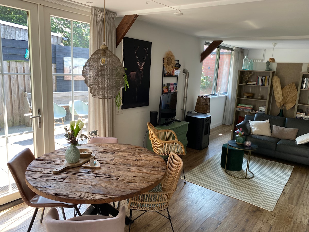 Teach aíochta scoite nua le gairdín príobháideach do 2 -4 dhuine in áit lárnach: laistigh de 5 nóiméad ag an trá agus ag na dumhcha agus laistigh de 20 nóiméad in Amstardam, Haarlem nó Alkmaar. Bialanna maithe faoi fhad siúil. Tá an fanacht: - Páirceáil phríobháideach - Halla isteach príobháideach - Seomra suí le cistinéad agus áit itheacháin - Seomra leapa ar urlár do bheirt - Áiteanna codlata breise ar an lochta do 1 -2, b'fhéidir daoine - Seomra folctha nua - aimseartha le cithfholcadán, doirteal agus leithreas - Tá an teilifís agus an Wi - Fi saor in aisce.