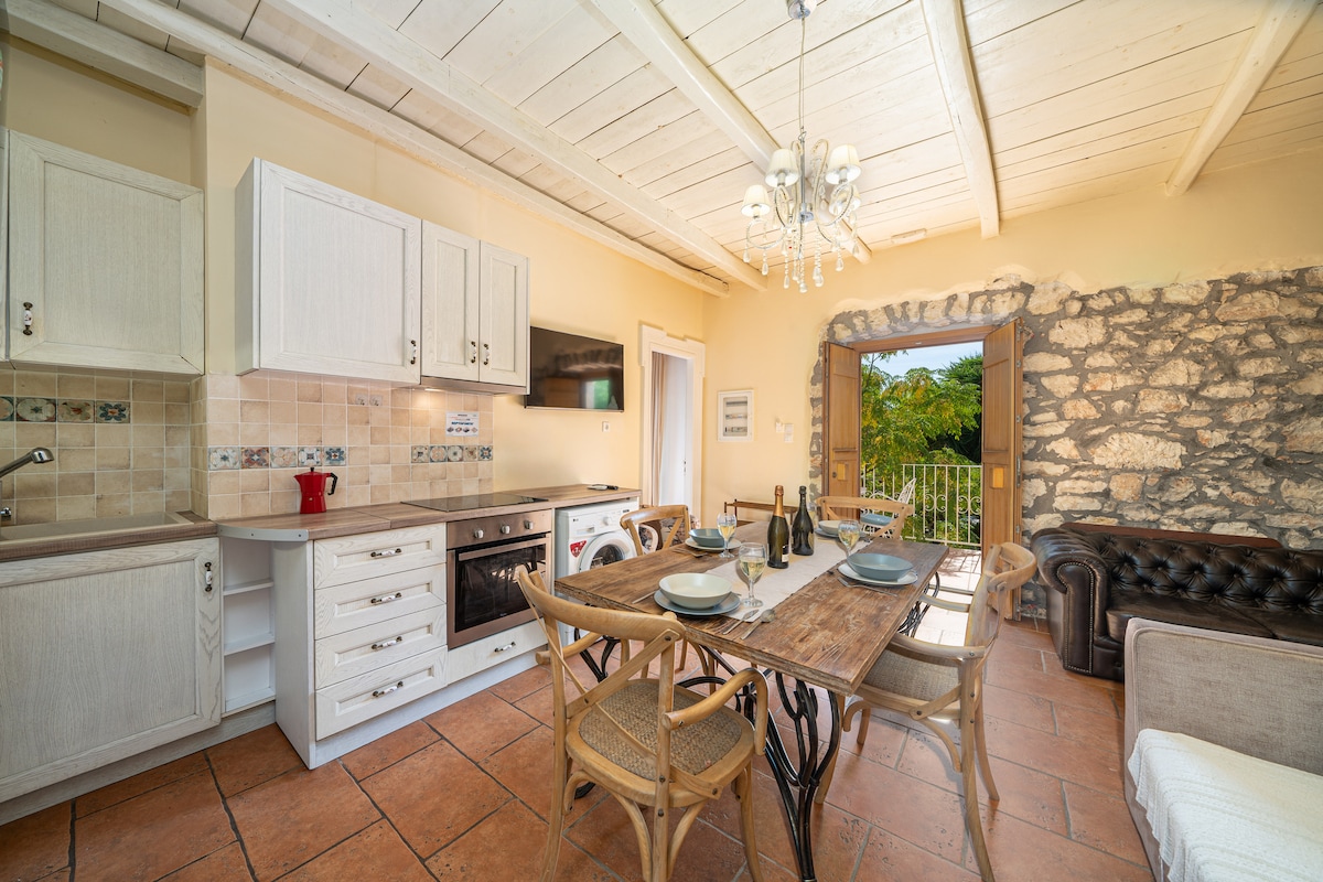 Spiti Mou is an original 1800's stone villa with a private swimming pool. Beautifully restored by the Italian owners and in keeping with local architecture, Spiti Mou provides a perfect combination of old charm and new luxury. Located in the historical settlement of Tselendata, just few minutes from Fiscardo and Foki Beach, with a panoramic view of the mythical island of Ithaka, Spiti Mou offers extremely comfortable self catering accommodation for up to 6 people.