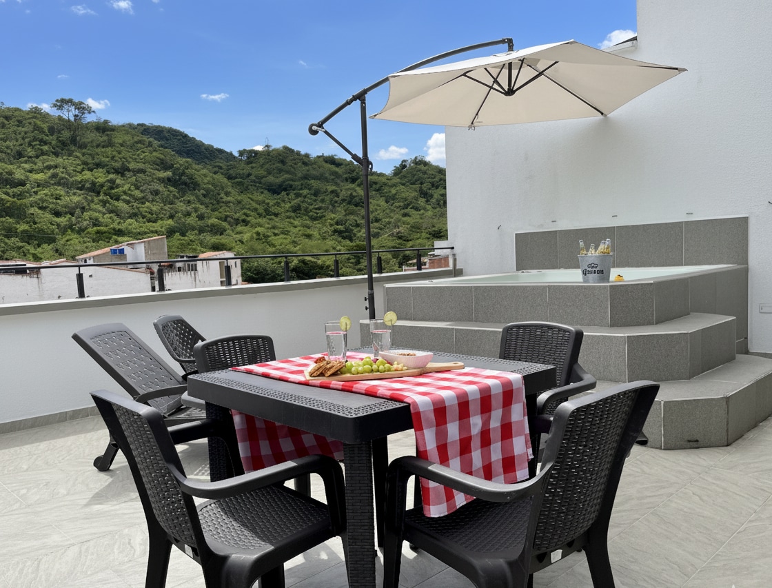 Déan iniúchadh ar fhíor - eispéireas Barichara inár dteach álainn 2 sheomra leapa! Le suíomh lárnach, bain sult as ár linn snámha phríobháideach, tumfaidh tú féin sa chultúr áitiúil agus bainfidh tú taitneamh as saoráidí nua - aimseartha, seomra bia agus cistin atá feistithe le gach rud a theastaíonn uait le haghaidh d'fhanachta . Tabharfaidh an maisiúchán teolaí agus an clós ciúin tearmann foirfe duit. Cuir in áirithe anois é agus faigh blaiseadh de dhraíocht Barichara ó chompord do thí shealadaigh!