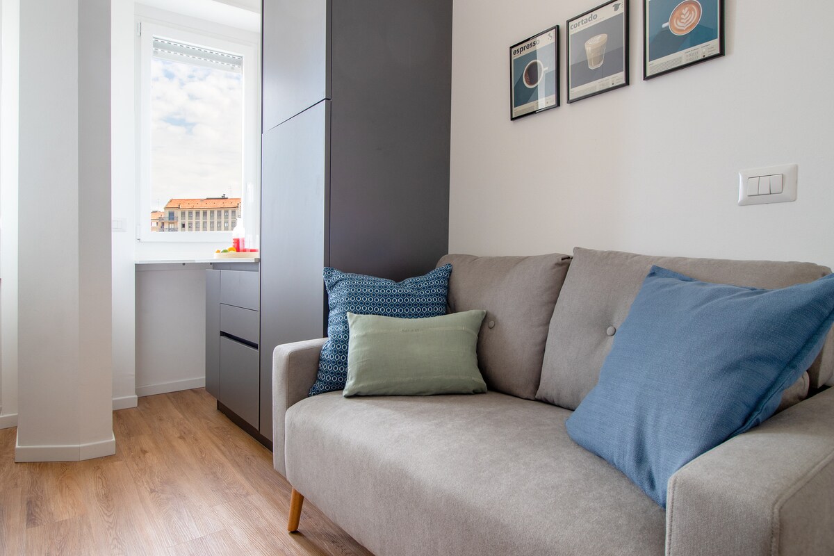 Escape to a private, sun-drenched penthouse in the heart of Milan. This unique, top-floor attic in a historic building offers a quiet retreat for two in the heart of the city. It features a fully equipped kitchen, a dedicated table/workspace, a modern home theatre system with Sonos audio, and two Daikin A/C units. Located just a 2-minute walk from Cadorna station, with the Duomo and Sforza Castle nearby. Enjoy seamless self-check-in for a perfectly independent city getaway.