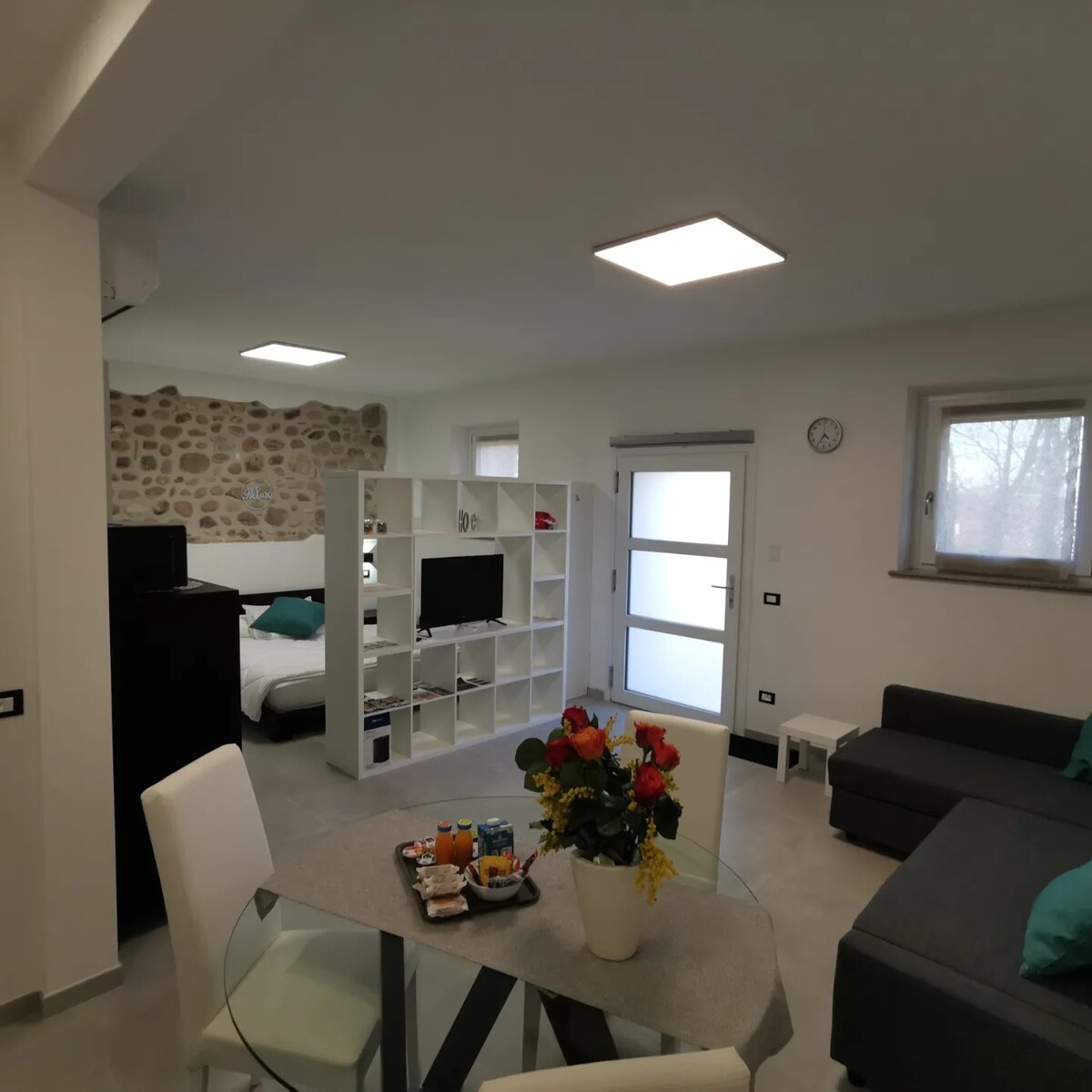 Spás mór oscailte 300 méadar cearnach, a tógadh ó stáblaí ársa '700s atá mar chuid den Pálás stairiúil Secco Pastore sa dara leath den cheathrú haois déag. Lochta le fuinneoga móra atá os cionn an phóirse (300 méadar cearnach) agus an pháirc fálaithe ag ballaí ársa. Tá sé curtha ar fáil agam go paiseanta trí mheascán de réanna éagsúla a chruthú, agus dá bhrí sin stíl bhunaidh, chluthar agus chompordach a fháil. Spás d'aon ghnó as am ! Ideal má tá tú grá an tuath Lombard fíor. Tá mé i mo chónaí anseo ó 1995.