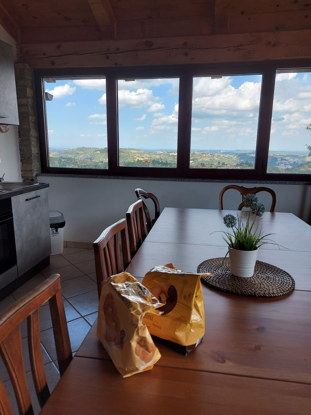 Múscail agus radhairc iontacha ar fhíonghort ó do sheomra leapa agus bain lán do shúl as rómánsúlacht cheantar fíona Piemonte. Lig do scíth ar do phaitió príobháideach le gloine Barbera agus an ghrian ag dul faoi thar na cnoic dhroimneacha. San árasán dhá leibhéal seo tá balcóin seomra leapa óna bhfuil radharc ar na fíonghoirt agus seomra folctha óna bhfuil radhairc ar na fíonghoirt, chomh maith le paitió príobháideach ar a bhfuil beárbaiciú, cistin iomlán, aerchóiriú agus páirceáil os comhair na réadmhaoine geataithe—foirfe do shaoire shuaimhneach rómánsúil. An-oiriúnach do lánúineacha agus do shaoirí gearra rómánsúla.