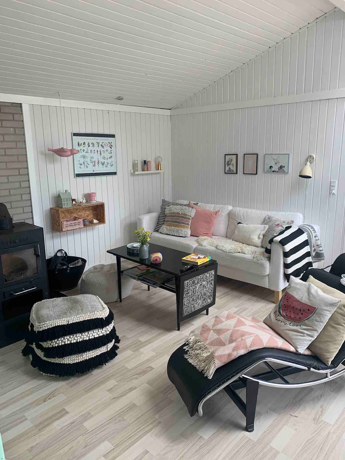 Teach samhraidh álainn i stíl gheal Nordach, 300m ón bhfarraige