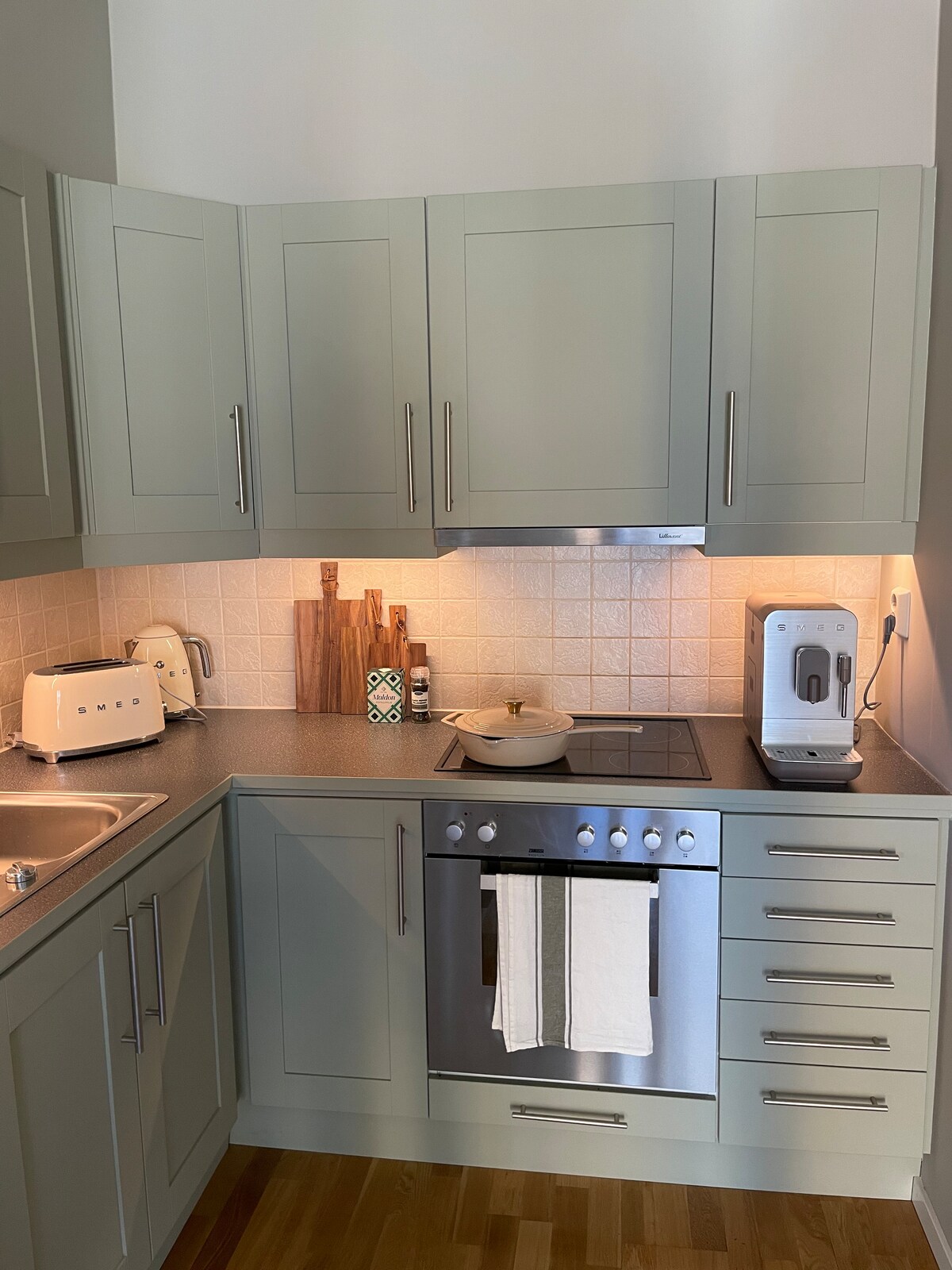 Teach beag uathúil ó 1899 le spás do chúigear. Nua-aimseartha, te agus compordach, mar sin coinnímid an compord, ach sean go leor chun an draíocht a choinneáil. Níl ach teach amháin idir teach Laurentze agus an phictiúrlann. Más mian leat bricfeasta a ithe sa ghlas, is féidir leat caife a dhéanamh sa chistin, agus siúl ar feadh dhá nóiméad go dtí an Byparken agus taitneamh a bhaint as ar bhinse glas ansin.