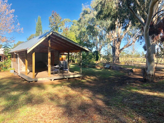 Seomraí athchóirithe lománaí suite i measc na gcrann guma ar réadmhaoin chaorach faoin tuath. Seomra folctha nua, agus cistin agus spás fairsing chun scíth a ligean agus taitneamh a bhaint as an taobh amuigh. Foirfe do ghrúpaí móra suas le 20. Áirithint íosta de thrí sheomra móide $110 USD as gach seomra breise. Is é an leagan amach ná 2 fhoirgneamh chomhthreomhara, ceann amháin ina bhfuil seomraí leapa, seomra folctha agus an ceann eile ina bhfuil an chistin/áit mhaireachtála. Tá tine oscailte agus poll dóiteáin ar fáil nuair a cheadaíonn srianta.20km Yass, 17km go Jugiong, 80km Canberra