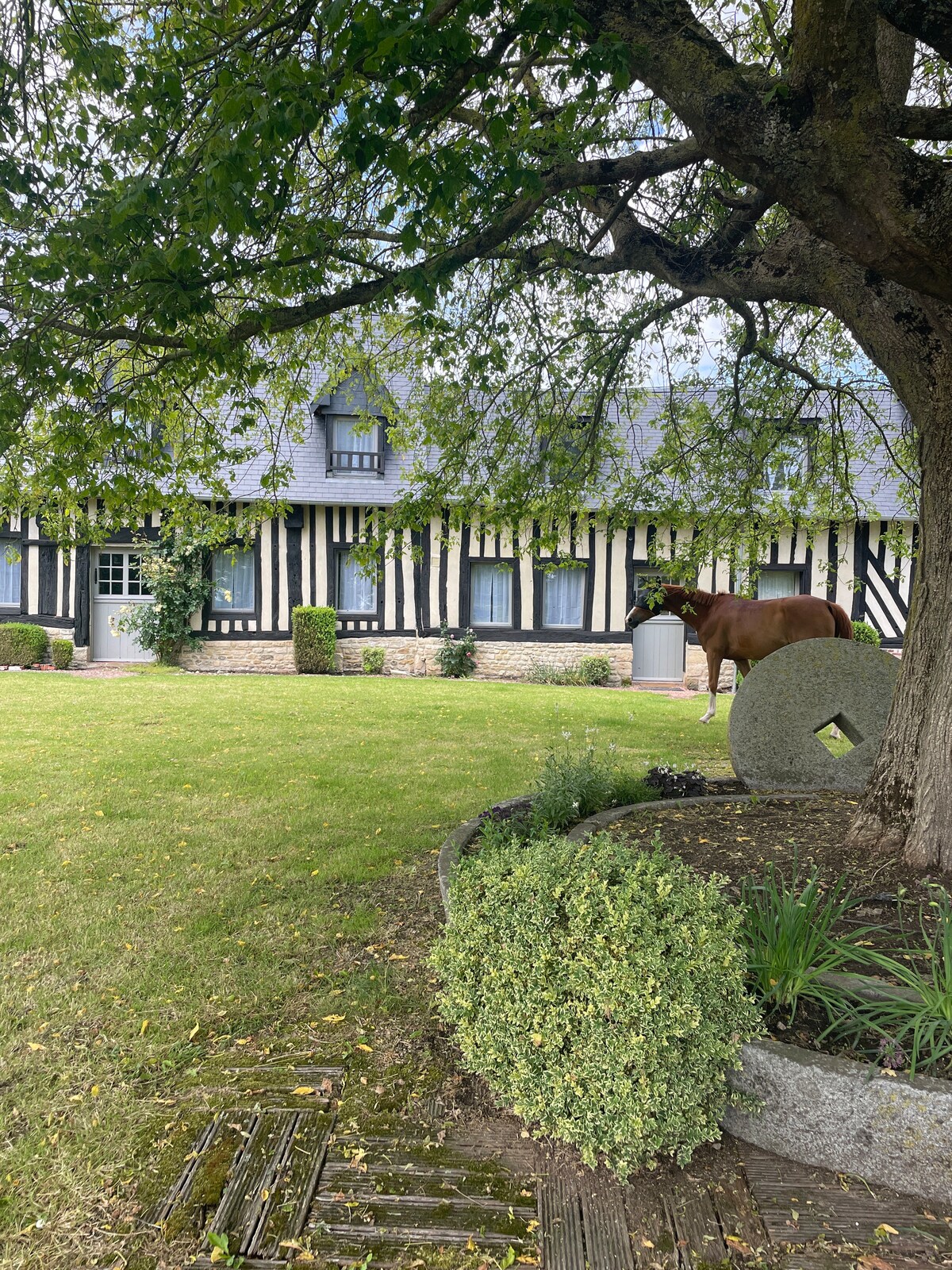 La Prairie Verte – Domaine de la Maison Penchée À seulement 10 minutes des plages de Cabourg et Houlgate, La Prairie Verte est un cottage 4★ qui conjugue charme normand et confort moderne. Entièrement rénové, il a conservé son âme et ses colombages tout en offrant un sauna privatif et une salle de bain balnéo. Avec sa vue bucolique sur le Pays d’Auge, c’est un véritable cocon de sérénité pour se ressourcer en couple ou en famille, entre mer, campagne et patrimoine.