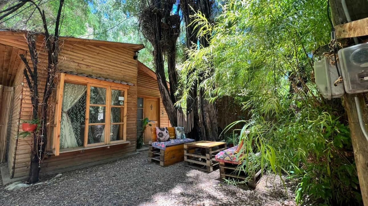 Cábán tuathúil - nua - aimseartha príobháideach atá suite 2 bhloc ón Plaza de Pisco Elqui,gar do bhialanna agus do ghnólachtaí. Páirceáil. 1 seomra leapa le seomra folctha príobháideach, 1 leaba de 2 dhuine (braillíní, blaincéid, blaincéad, piliúir agus cúisíní). 1 lampa, 1 lampa, 2 shíoltóirí leapa, tolg, troscán seanda athchóirithe agus 1 challaire Bluetooth.1 sorn leictreach don gheimhreadh.Kitchen,miasniteoir agus cuisneoir ar an ardán (potaí, piliúir, sceanra, citeal,srl.) agus gríoscán gualaigh. Tá a lán fásra ann.