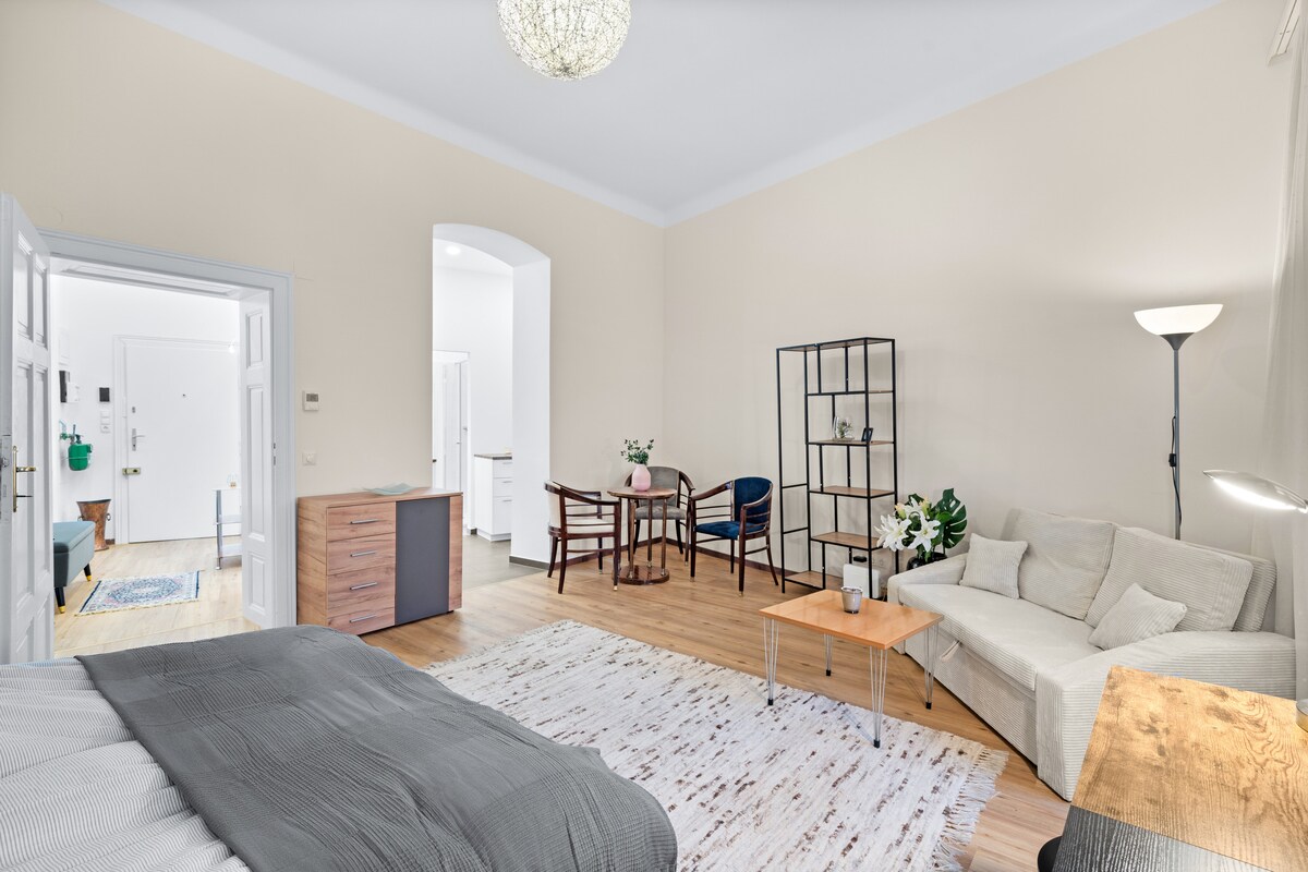 Tá an t - árasán suite i gceantar is fearr ar fad chun iniúchadh a dhéanamh go héasca agus go tapa de shiúl na gcos nó ar an iompar poiblí. Laistigh d'achar siúil tá go leor músaem, dánlann, bialann, beáir agus siopaí nua - aimseartha agus siopaí suimiúla. Is féidir teacht ar na radhairc timpeall an "Ring" cáiliúil i thart ar 7 nóiméad de shiúl na gcos. Tá árasán na cathrach feistithe i stíl ghalánta JAPANDI.