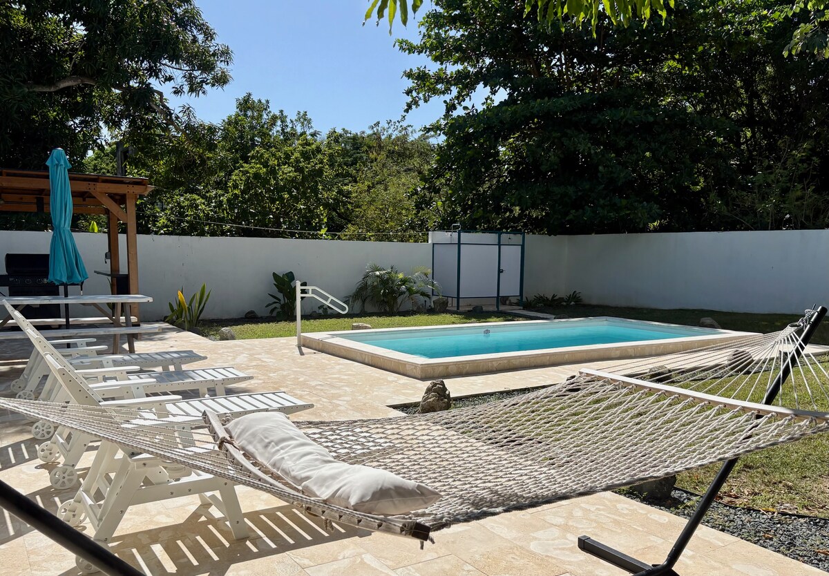Taitneoidh ár dteach 100% siúil, compordach leat mar d'áit phríobháideach féin, tearmann ciúin trópaiceach i gcroílár Esperanza, le 2 MBRs + 1BR + sofabed; 2 sheomra folctha dúbailte taobh istigh, chomh maith le cithfholcadán méith lasmuigh; paitió grianmhar, cosanta ag báisteach/tírdhreachú bláthach, cistin lán - tí, A/C, páirceáil, gach línéadach lena n - áirítear tuáillí trá agus folctha. Tá fáilte roimh pheataí, ach amháin má chaitear leo mar theaghlach. Siúlann sé go héasca chuig earraí grósaera, bialanna, beáir, áiteanna scáthaithe cois trá ina bhfuil snorcláil iontach agus solas na gréine iontach.