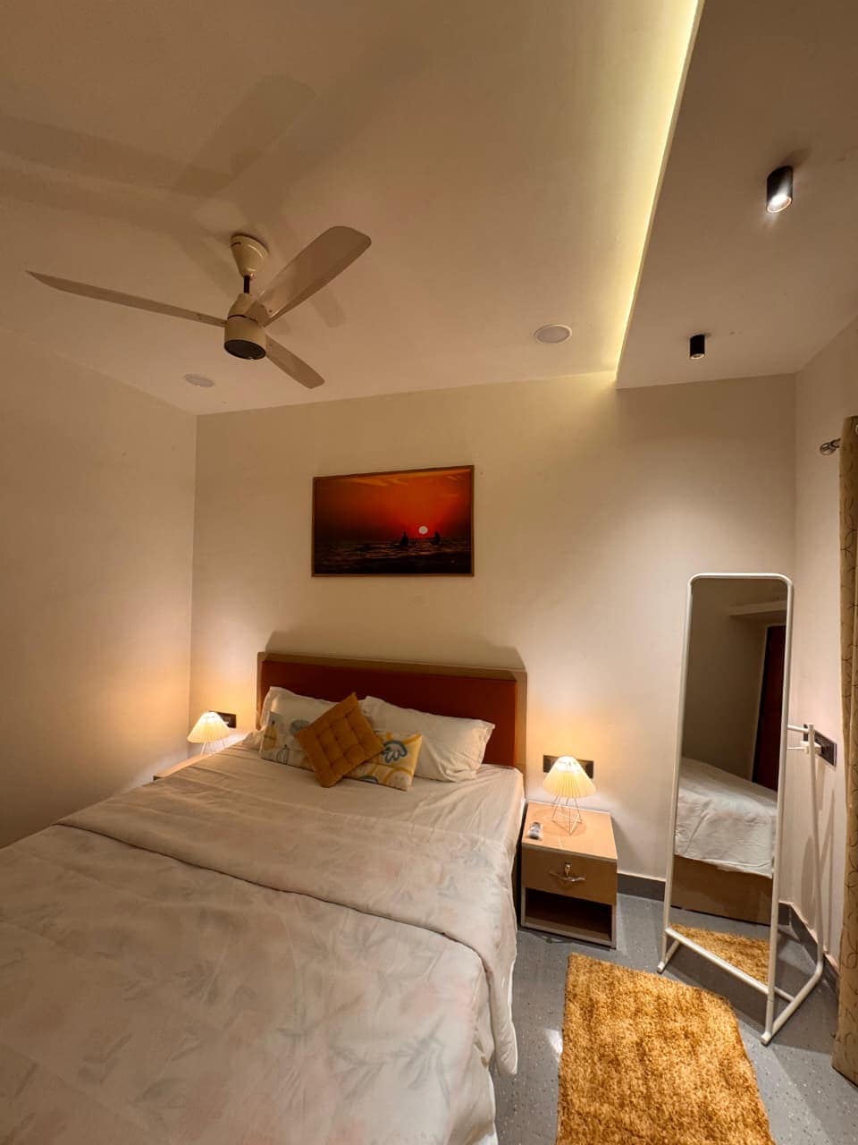 Lig do scíth i villa 2 bhk. is féidir leat áirithint a dhéanamh leis an teaghlach ar fad agus tá an áit seo an-suaimhneach agus tá rochtain dhíreach ar an trá aici.