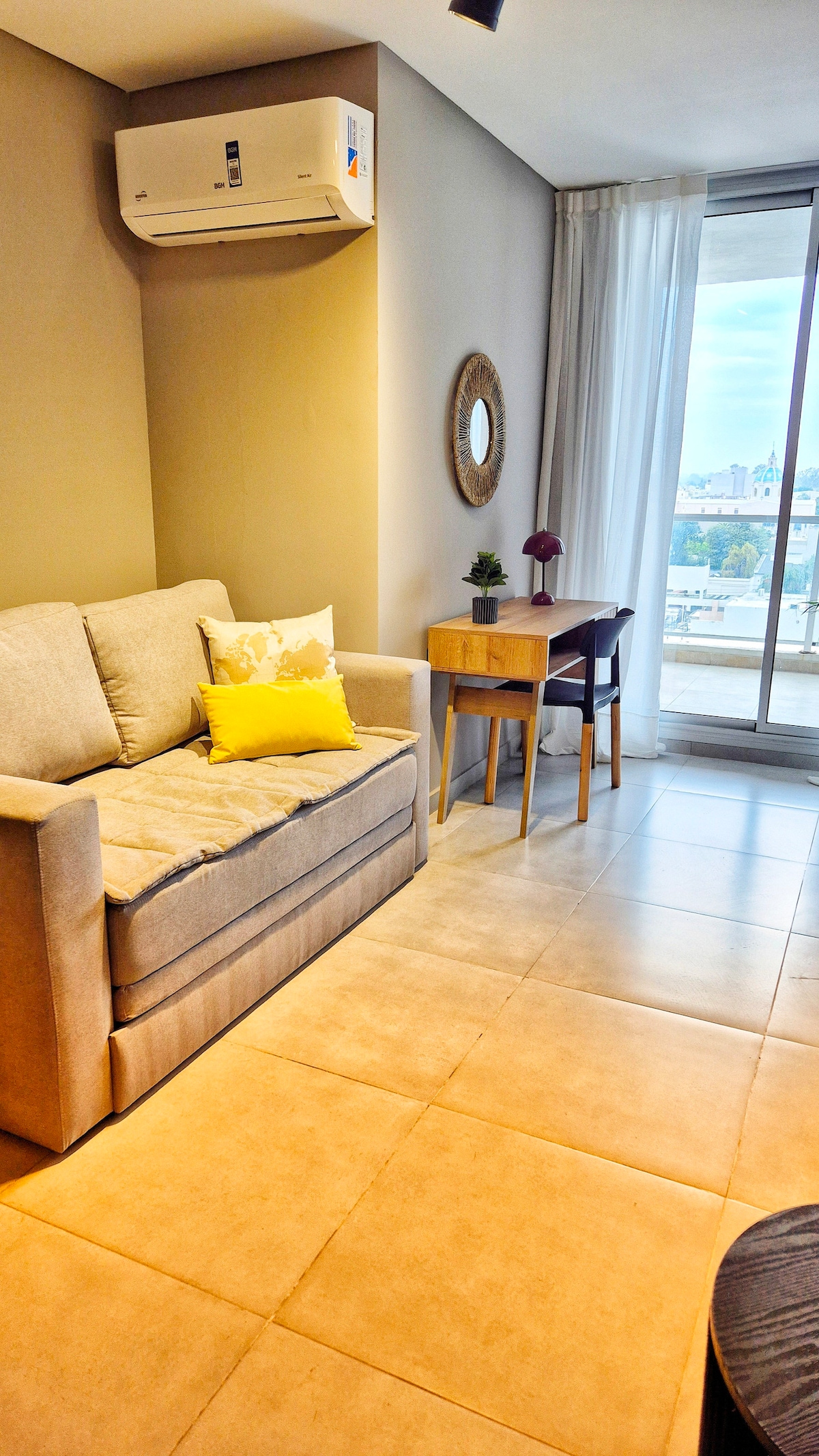 Departamento céntrico y funcional, a metros de la Terminal. Equipado con aire, WiFi, Smart TV, lavarropas y cocina completa. El edificio ofrece una gran terraza con pileta y asador, ideal para relajarse y disfrutar la vista. Ubicación perfecta para viajeros de paso, trabajo o turismo, con comercios y gastronomía cerca. Un espacio práctico, cómodo y bien conectado para tu estadía en Villa María.