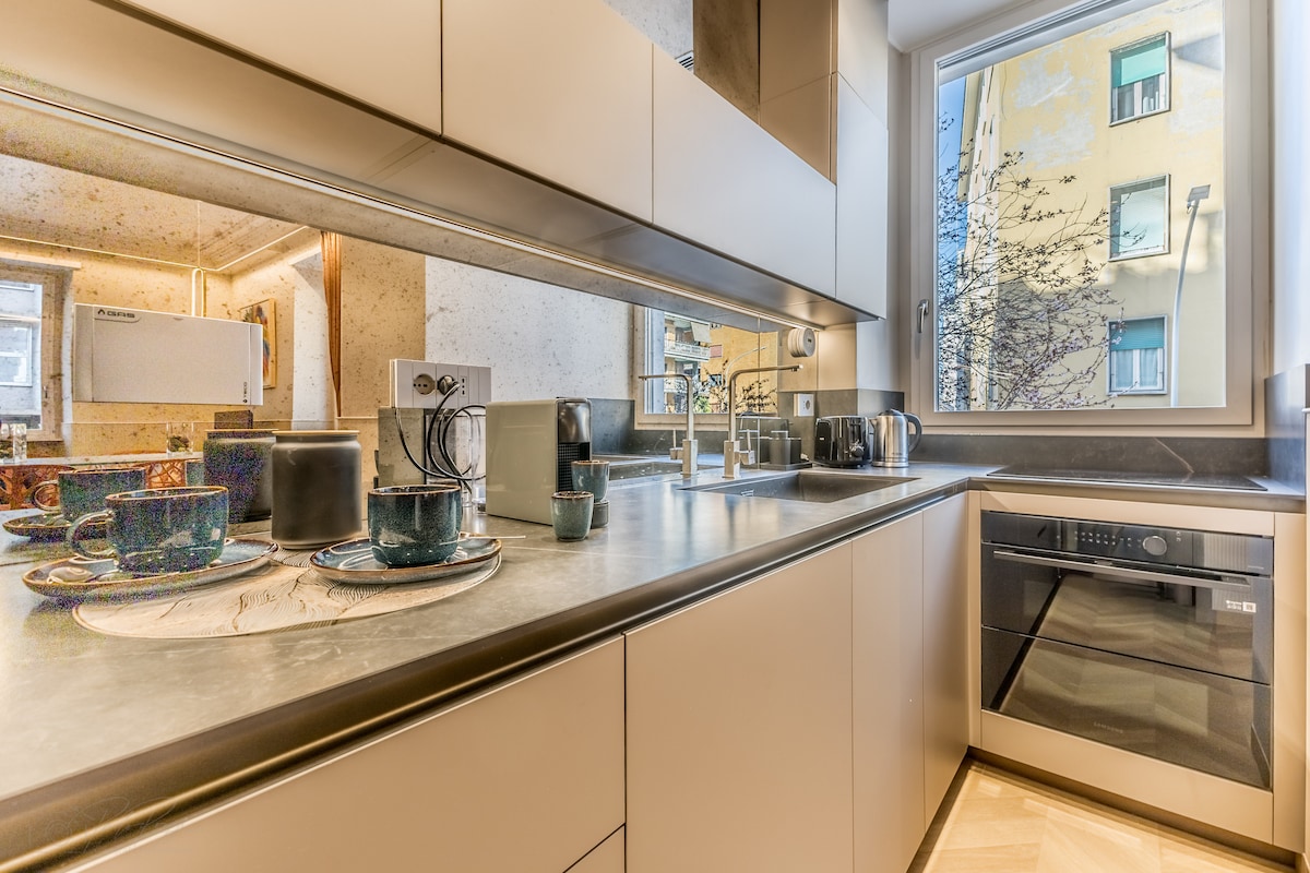 Tá an t - árasán aon seomra leapa seo suite ar an gcéad urlár agus tá saoráidí nua - aimseartha agus paitió inmharthana ann, atá foirfe do dhinnéir alfresco. Foirfe do lánúineacha nó do theaghlaigh bheaga, tá córas A/C den scoth san árasán i ngach seomra, córas fuaime gan sreang ilseomra, folcadán gaile chomh maith le folcadán . Téigh taobh amuigh den doras tosaigh chun do bhonn a chaitheamh agus tú féin a thumadh in atmaisféar bríomhar lár na cathrach.