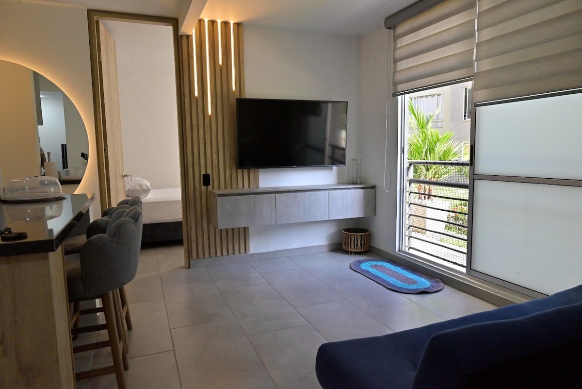Disfruta de un moderno apartamento con terraza totalmente privada y una vista espectacular hacia el llano y una reserva forestal. Perfecto para relajarte y contemplar amaneceres y atardeceres inolvidables. El espacio incluye: -Terraza privada con la mejor vista panorámica -Zona BBQ exclusiva -Horno y parrilla en la terraza 🍗 -Aire acondicionado en dos habitaciones ❄️ -Ventilador techo -Sonido ambiental por Bluetooth en ambas plantas 🔊