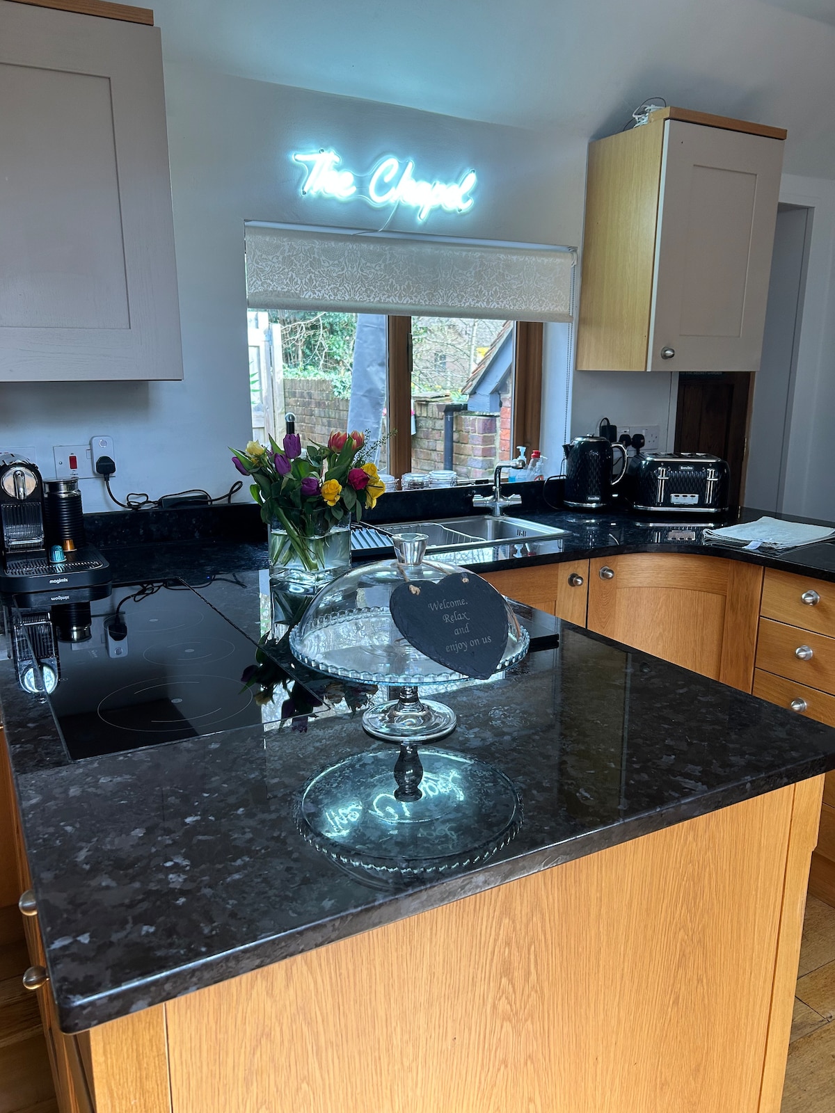 Tá sé suite in aice le Conair Cuckoo i lár Maynards Green, limistéar ainmnithe ina bhfuil áilleacht nádúrtha den scoth, an Séipéal gleoite ag Teachín Sciobóil. Iar - Shéipéal ón 15ú hAois a athraíodh go grámhar go tearmann taibhseach, tréithiúil, féinchuimsithe 2 sheomra leapa, in aice lenár dteach féin. Bródúil as gnéithe bunaidh lena n - áirítear teallach ingle nook ach an só atá tuillte agat ar do shos a choinneáil. Níl i dteach tábhairne áitiúil ach siúlóid ghearr ar shiúl. Ideal do shiúlóirí & iniúchadh a dhéanamh