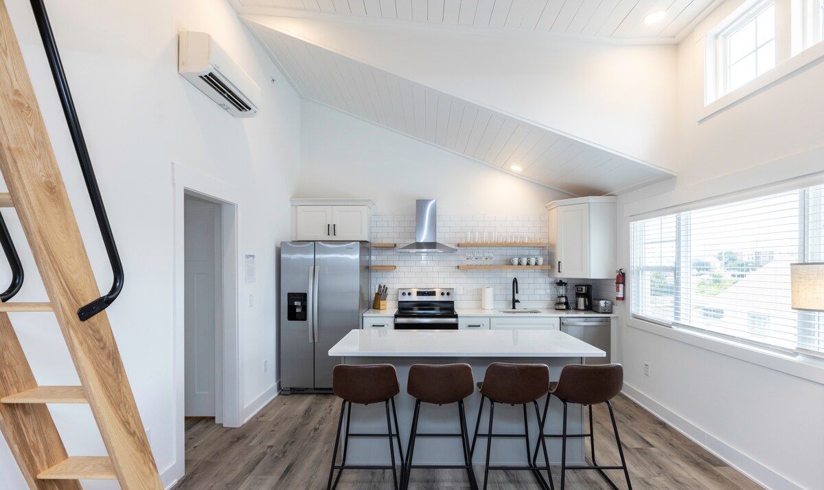 * Páirc Surfála an Atlantaigh ar OSCAILT go hoifigiúil. Tógáil éadrom fós * Díreach trasna na sráide ó Pháirc Surfála Atlantic Park! Tá an t - aonad 1 sheomra leapa nua - thógtha seo ina bhfuil síleálacha ardaithe agus solas nádúrtha ina chodladh 6. Fáilte go dtí The Vibe District, siúlóid ghearr go dtí an trá/clárchosán agus Ionad Spóirt Virginia Beach. An CEANTAR bríomhar Cruthaitheach ina bhfuil bialanna, caiféanna, grúdlanna agus timpeallacht phobail iontach. Is iad na socruithe codlata ná leaba rí amháin i seomra leapa ar leith, leaba lánmhéide amháin i