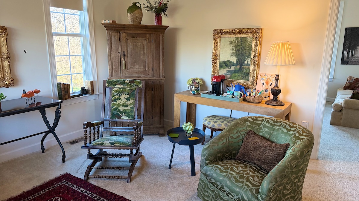 Take it easy at this unique & tranquil getaway--close to everything and yet so far away! Tucked away in one of the last known forested wetlands in Western Loudoun with breweries, vineyards & restaurants minutes away. Walk the grounds--16 acres of paths--to surround yourself with quiet beauty. Every season brings something new to discover. Winter is still. Spring brings the ephemerals, peepers & wood ducks. Summer is lush & full of wildlife. Fall is for migration, a birder's paradise.