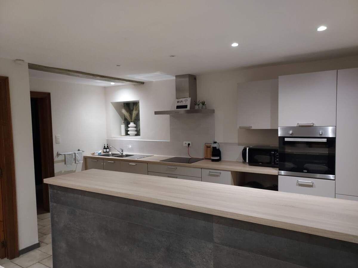 Tá ár ndúblach nua - aimseartha díreach athchóirithe go hiomlán agus tá sé feistithe go hiomlán. Tá sé suite i lár na cathrach, agus is áit réasúnta ciúin é fós ar chúl an fhoirgnimh (siopa "créaflors" - cúlchlós). Tá ár lóistín 70 m² eagraithe ar 2 leibhéal leis an trealamh riachtanach go léir: seomra suí, seomra bia, cistin lánfheistithe, seomra leapa mór ina bhfuil áit léitheoireachta, seomra folctha ina bhfuil folcadán agus cithfholcadán. Tá sé suite go háisiúil i lár Couvin agus tá páirceáil saor in aisce béal dorais.