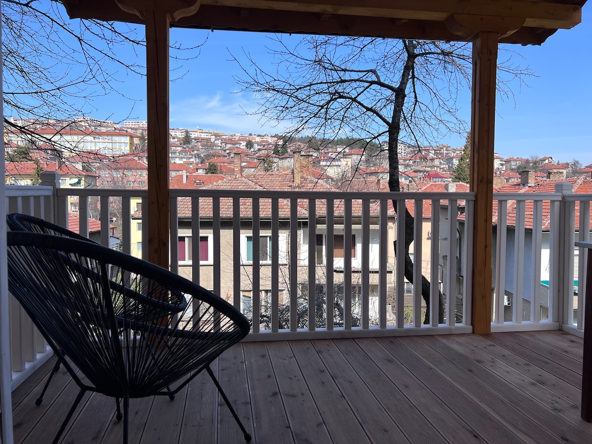 Century View VT – Modern Apartment with a Unique Terrace & Panoramic Views Stay in THE BEST part of Veliko Tarnovo’s city center, on a quiet street just steps from Tsarevets Fortress, the Riders Monument, museums, and top restaurants. Enjoy a modern interior, full amenities, and a unique terrace with breathtaking city views – Ideal for a comfortable, peaceful, and unforgettable stay in the heart of Veliko Tarnovo!