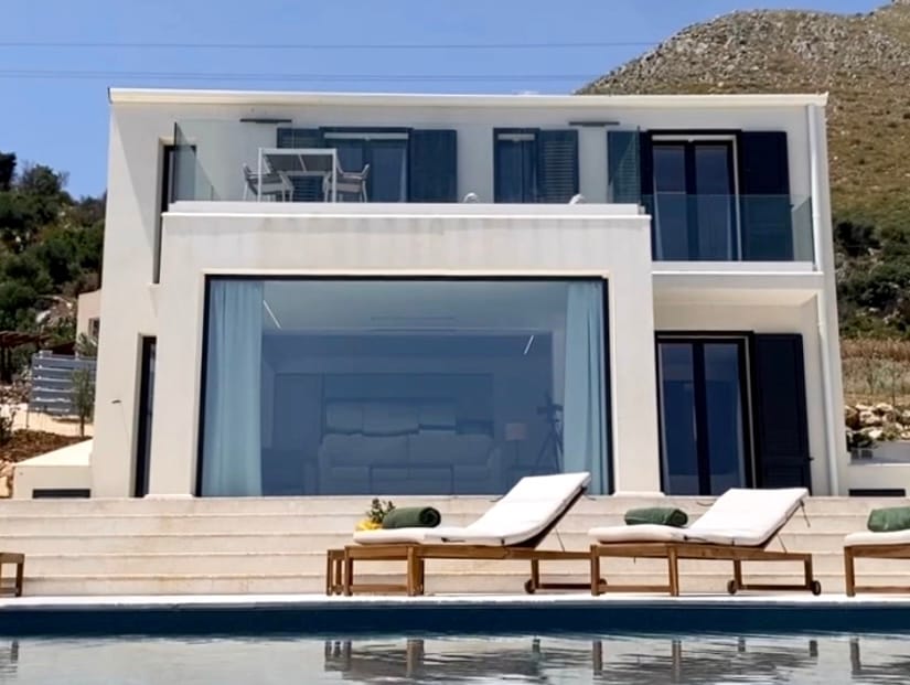 Villa lánléargais ag a bhfuil radhairc iontacha ar an bhfarraige