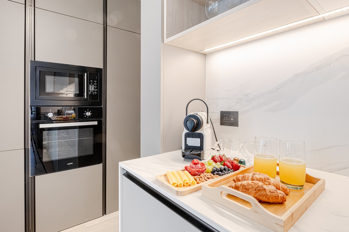 Déan iniúchadh ar ár ndíonteach, atá suite i gcroílár na cathrach, in aice le bialanna uas - scála agus ionaid siopadóireachta shómasacha. Tá 1 pháirceáil eisiach sa spás nua - mhaisithe seo freisin agus tá rochtain dhíreach aige ar an ardaitheoir a thugann go díreach chuig doras d'árasáin thú, rud a thugann compord agus slándáil duit le linn d'fhanachta. Cuirimid seirbhísí pearsantaithe agus seirbhís eisceachtúil do chustaiméirí ar fáil freisin d'aon riachtanas a d'fhéadfadh a bheith acu le linn a bhfanachta.