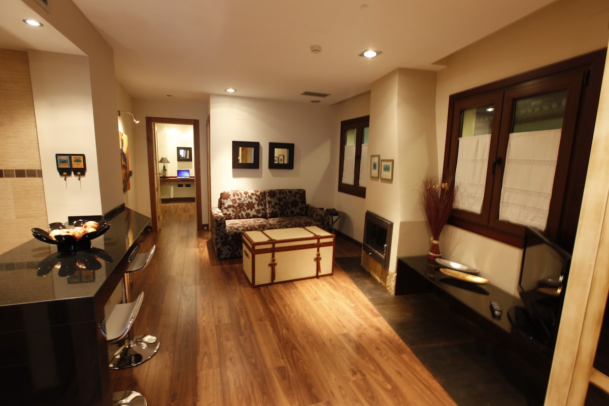 Árasán dochreidte i gcomharsanacht stairiúil Granada ar a dtugtar Albaicín. Ón leaba beidh radhairc iontacha agat ar an Alhambra a mbeidh an chuma air gur féidir leat teagmháil a dhéanamh leis le do lámha... Ón seomra suí is féidir leat taitneamh a bhaint as an mothú céanna. Lonnaithe i gceantar nach féidir a shárú, díreach os comhair an Alhambra, áit ar féidir leat taitneamh a bhaint as na radhairc is fearr agus is gaire ar an séadchomhartha mórthaibhseach seo.