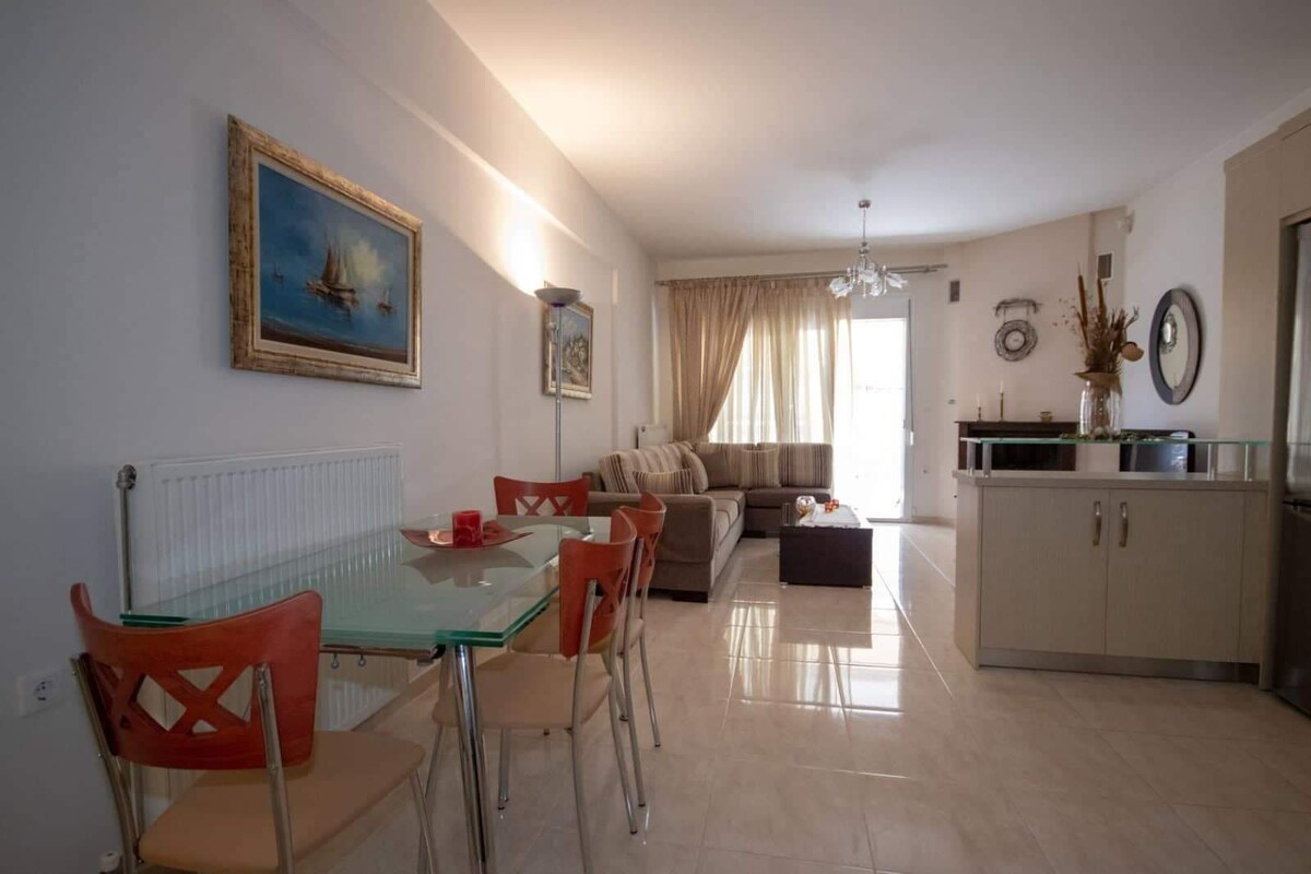 Árasán 50m2 atá athchóirithe go hiomlán, 1ú urlár, an - ghar do lár Volos(siúlóid 7 nóiméad amháin) Tá páirceáil phríobháideach saor in aisce ann, téamh uathrialach, aerchóiriú, meaisín níocháin. Tá seomra leapa amháin ann le 1 leaba dhúbailte agus teilifís 50', seomra suí le leaba thoilg agus teilifís chliste 42'', seomra folctha, cistin agus deasc. Geal agus te, oiriúnach chun fanacht deas a bheith agat in Volos.Itis oiriúnach do theaghlaigh a bhfuil leanaí, lánúineacha, cairde agus gairmithe acu.