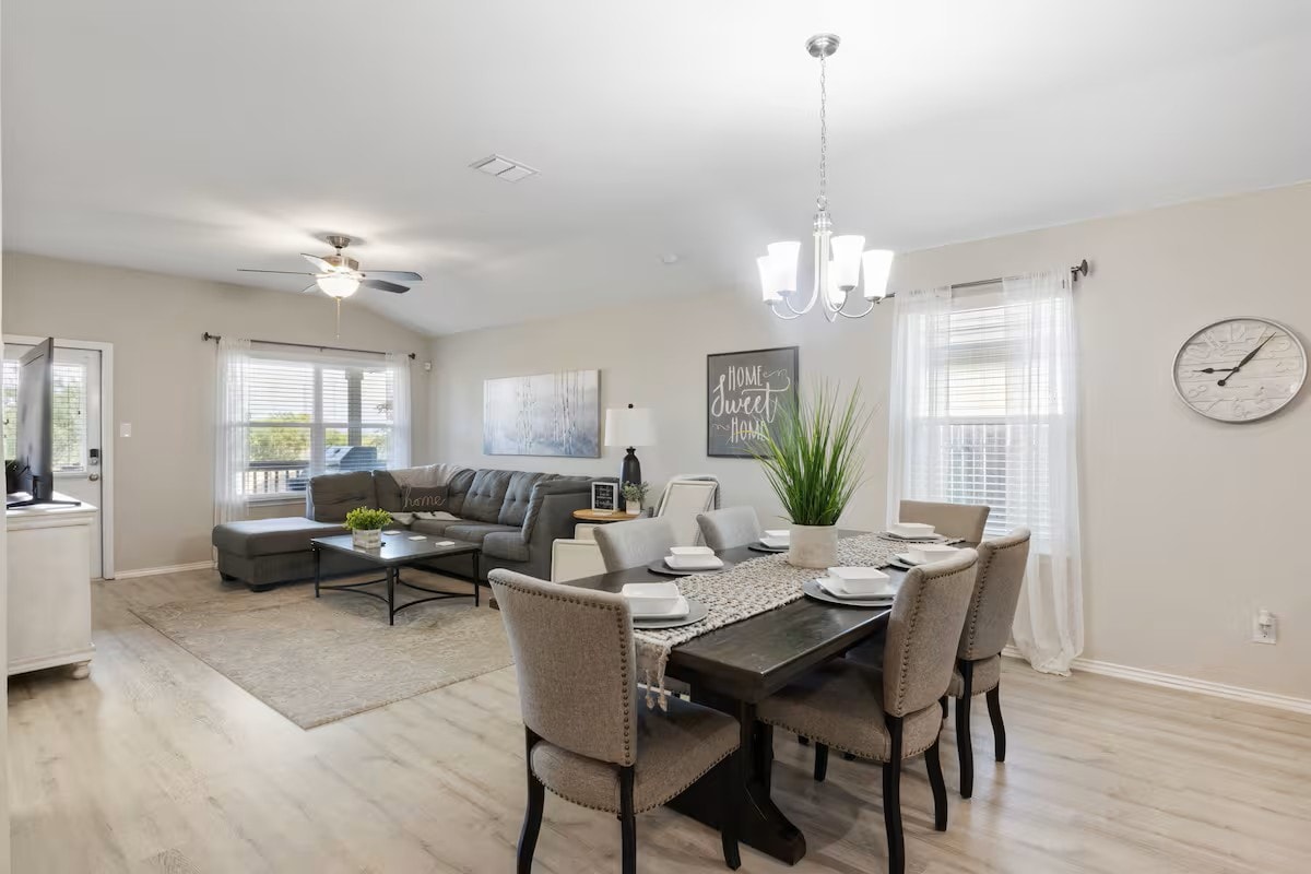 Situated only 12 minutes from SeaWorld and Lackland AFB, and 20 minutes from SAT Airport, this cozy home is an ideal base for families or groups. It combines comfort with easy access to San Antonio's attractions. Enjoy a tranquil retreat with ample space for fun, thoughtfully furnished rooms, a fully equipped kitchen, and a serene outdoor area. This welcoming abode promises a memorable stay, perfectly balancing residential serenity with proximity to key sites.