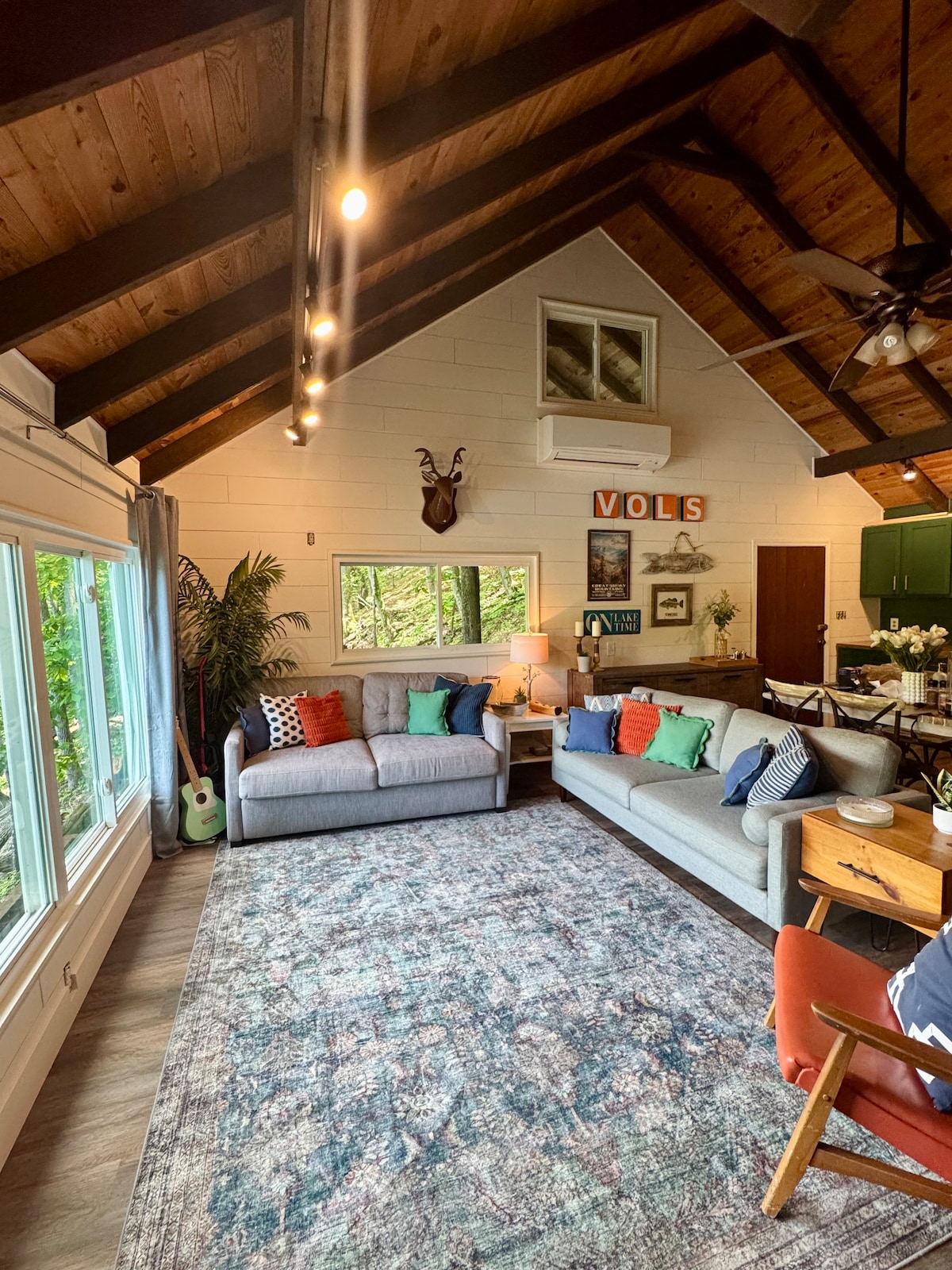 Completely private suite with its own entrance nestled on 5 acres . Aprox 900sq wing on a 5300sq house. Private entrace. Separated from main house with double doors that will be locked on BOTH sides. Very spacious open area featuring a full kitchen, living room, and loft with twin bed. Private Queen bedroom with closet. Private bathroom with shower and laundry. 2 Mini-splits heat and air. 1 QUEEN BED, 1 TWIN, 1 AIR MATTRESS AND 2 COUCHES. Centrally located between Knoxville and Chattanooga, TN.