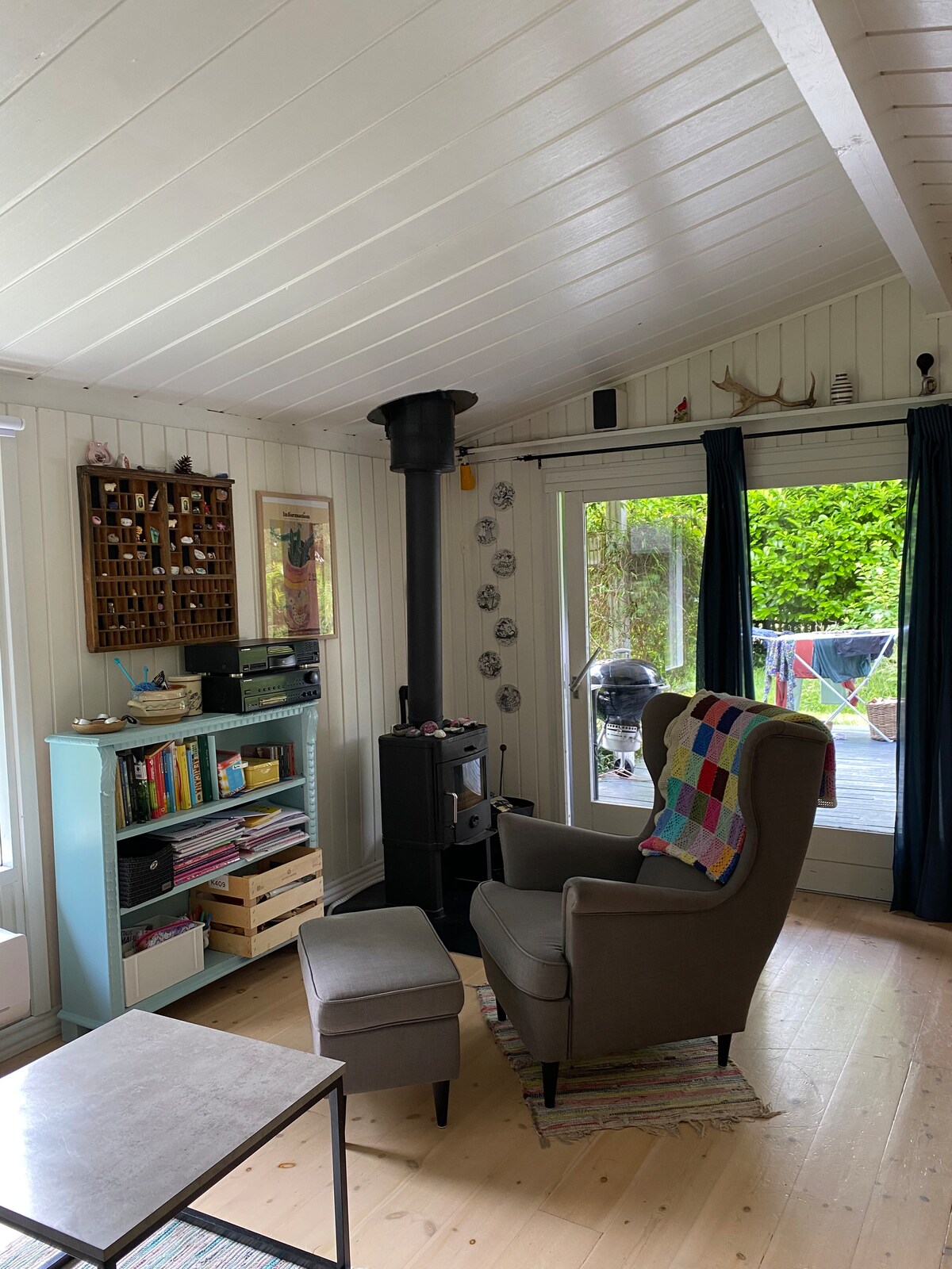 Teachín beag galánta tuathúil le gairdín nádúrtha álainn. Tá spás ann do pháistí, féileacáin agus bláthanna fiáine - agus níl teilifíseán ná idirlíon ann. Tá cistin/seomra suí sa teach samhraidh ina bhfuil sorn dóite adhmaid agus leaba thoilg, cistin atá feistithe go maith, seomra folctha agus dhá sheomra leapa (seomra amháin do pháistí), meaisín níocháin agus triomadóir tumble. Bréagáin, luascán agus trampailín sa ghairdín. Níos lú ná 300 méadar ar uisce/trá. In aice le foraois, bailte beaga teolaí, Møn agus nithe is díol spéise.