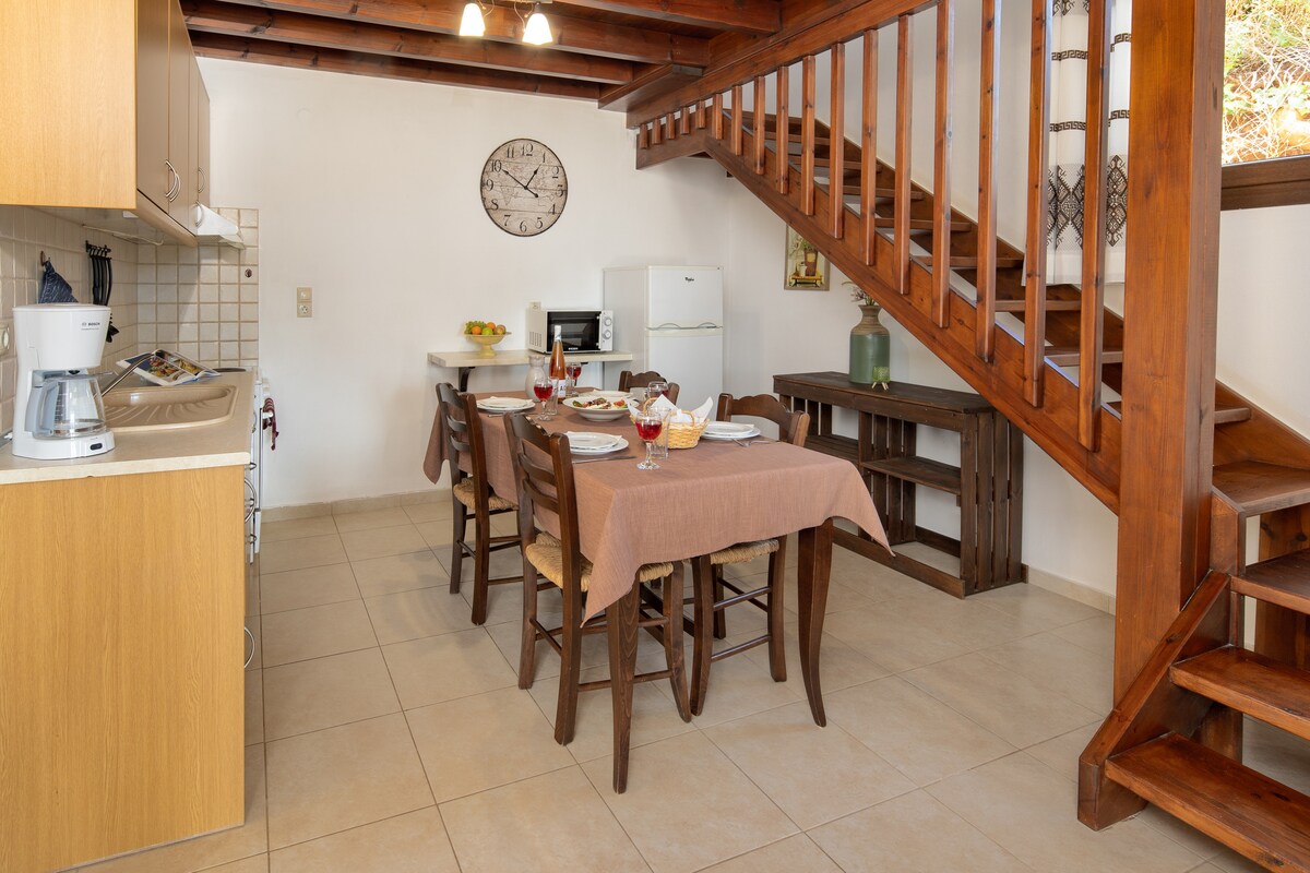 Lig do scíth faoi ghrian gheal na Meánmhara, bain sult as tírdhreach iontach na Cretan chomh maith le radharc iontach ar an bhfarraige ón villa iontach seo, a tógadh ag an bhfiacail de mount miotasach Ida i measc garrán olóige agus feirmeacha caorach, i sráidbhaile ciúin cúlráideach.