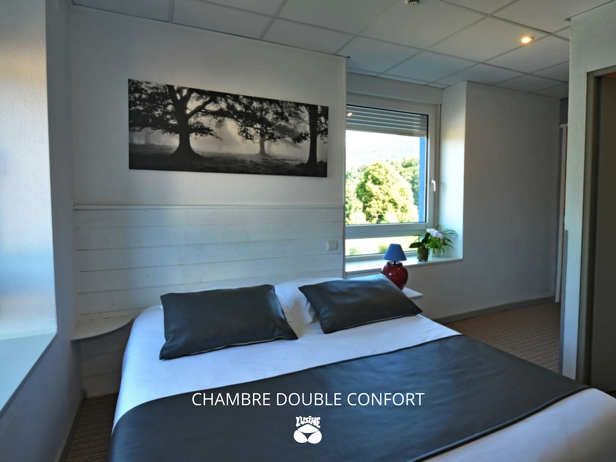 Ce logement tendance ne manque pas de charme. La chambre se situe au dessus de notre restaurant familiale. Vous êtes tout près de la magnifique région de mille étang. Excellent point de départ pour faire des randonnées à pied ou en vélo.