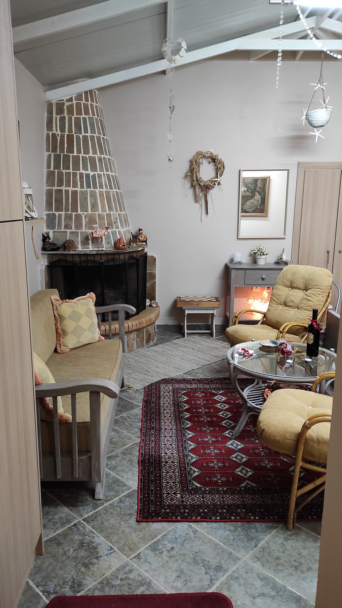 Tógadh an teach roimh 1940 agus bhíodh sé ina theach ag múinteoir an tsráidbhaile ag an am sin. Ba é an t-íoslach an seomra stórála don roisín. Ní raibh mo sheanathair, Dimitris, ábalta an teach agus an t-íoslach a cheannach go dtí 1975, chun an foirgneamh iomlán a úsáid mar sheomra stórais. Ansin, in 2019, chinn mo theaghlach an t-urlár uachtair a athrú go seomra Airbnb agus an t-íoslach a úsáid mar sheomra stórála don fhíon agus don ola.