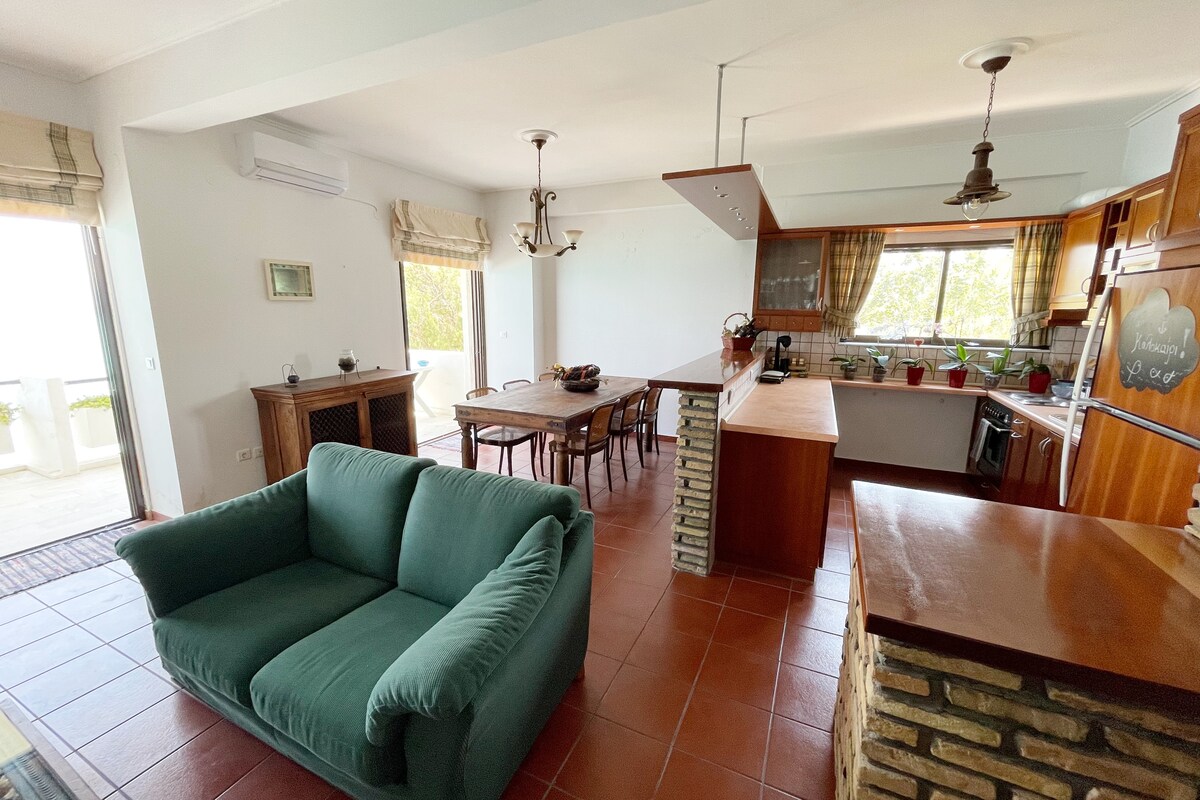 Lig do scíth sa spás suaimhneach, fairsing agus sómasach seo, ag baint taitneamh as do chaife nó do bhéile ar an mbalcóin ag breathnú amach ar an gceantar glas. Tá Nafplio stairiúil in aice láimhe, áit ar féidir leat taitneamh a bhaint as do chaife nó do bhéile in aice na farraige. Sábháilte, cosanta leis na bearta riachtanacha go léir atá fógartha ag an rialtas. Glanadh cúramach dian!