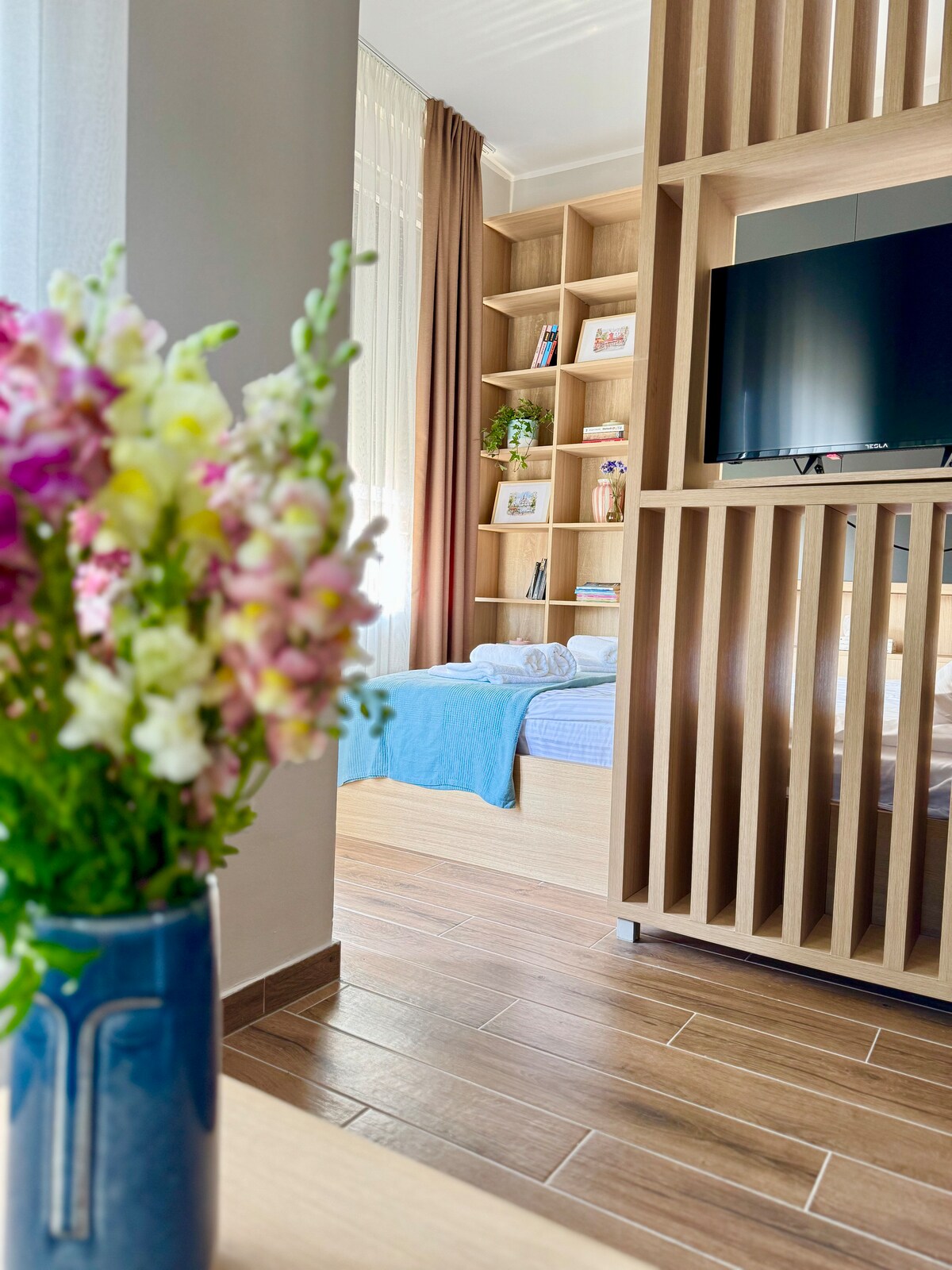 Tá ár n - áit an - chompordach, árasán nua - aimseartha faoi throscán agus athchóirithe. Is éard atá ann seomra amháin níos mó, cistin fheidhmiúil, seomra folctha nua - aimseartha agus ardán fairsing a bhfuil radharc álainn uaidh ar an timpeallacht shíochánta. Tá sé suite i lár níos leithne Novi Sad, ar feadh thart ar 15 -20 nóiméad siúil éasca ó bheagnach gach radharc sa chathair.