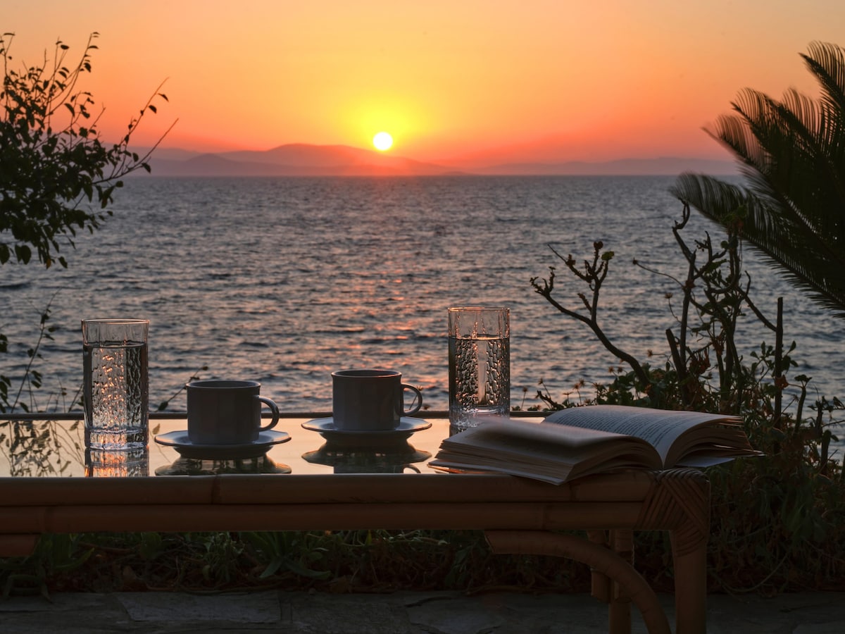 Radharc iontach ar an bhfarraige Villa ag a bhfuil linn snámha