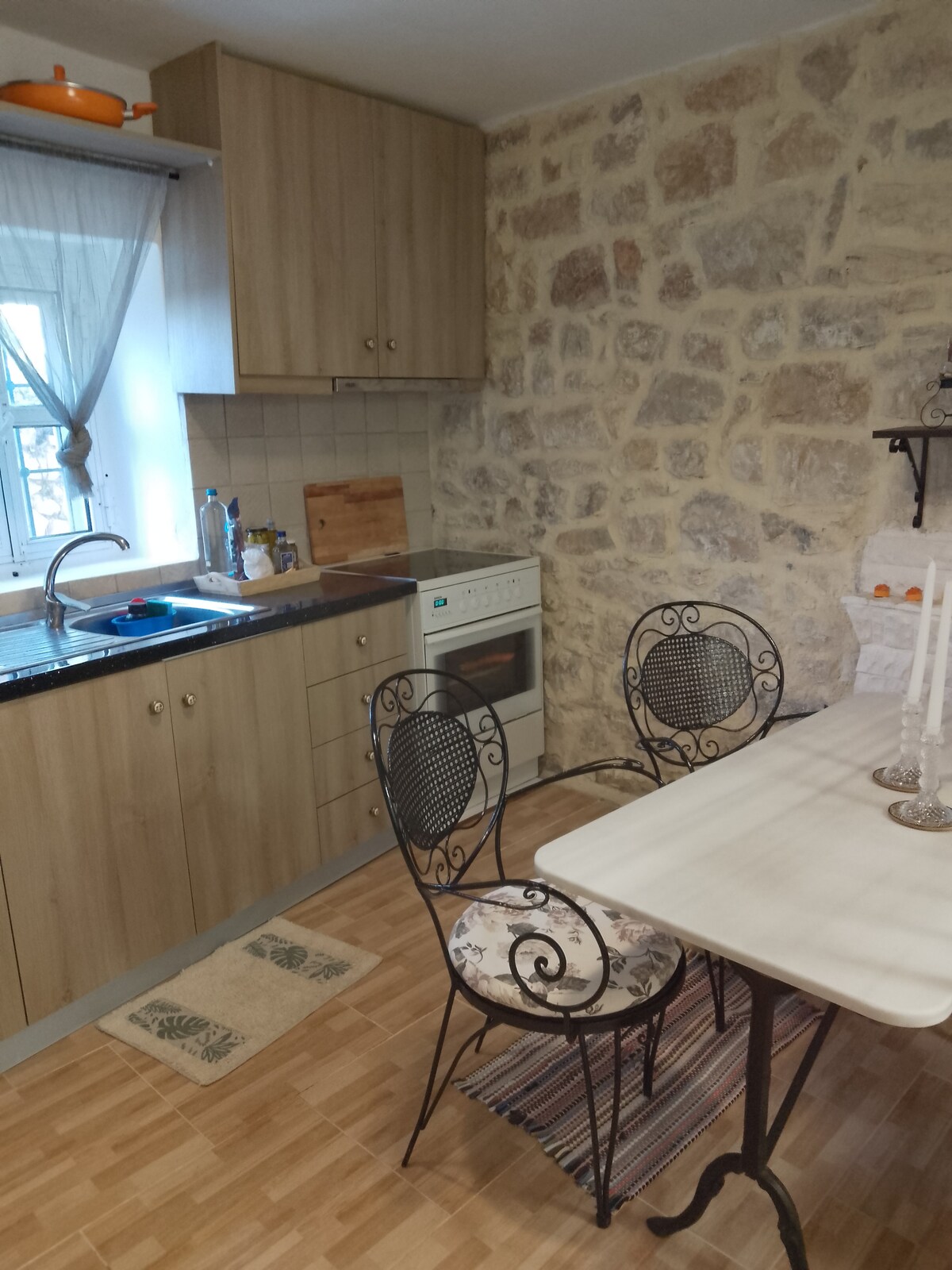 Tá ár dteach suite i gcroílár shean-sráidbhaile Dhërmi, agus tá fanacht suaimhneach barántúil ar fáil ann. Tá dhá sheomra leapa, limistéar comhluadair comhroinnte, balcóin ar a bhfuil radhairc ar an bhfarraige agus ar na sléibhte, agus gairdín álainn ann—foirfe do lánúineacha, do theaghlaigh nó do chairde atá ag lorg suaimhnis agus an dúlra