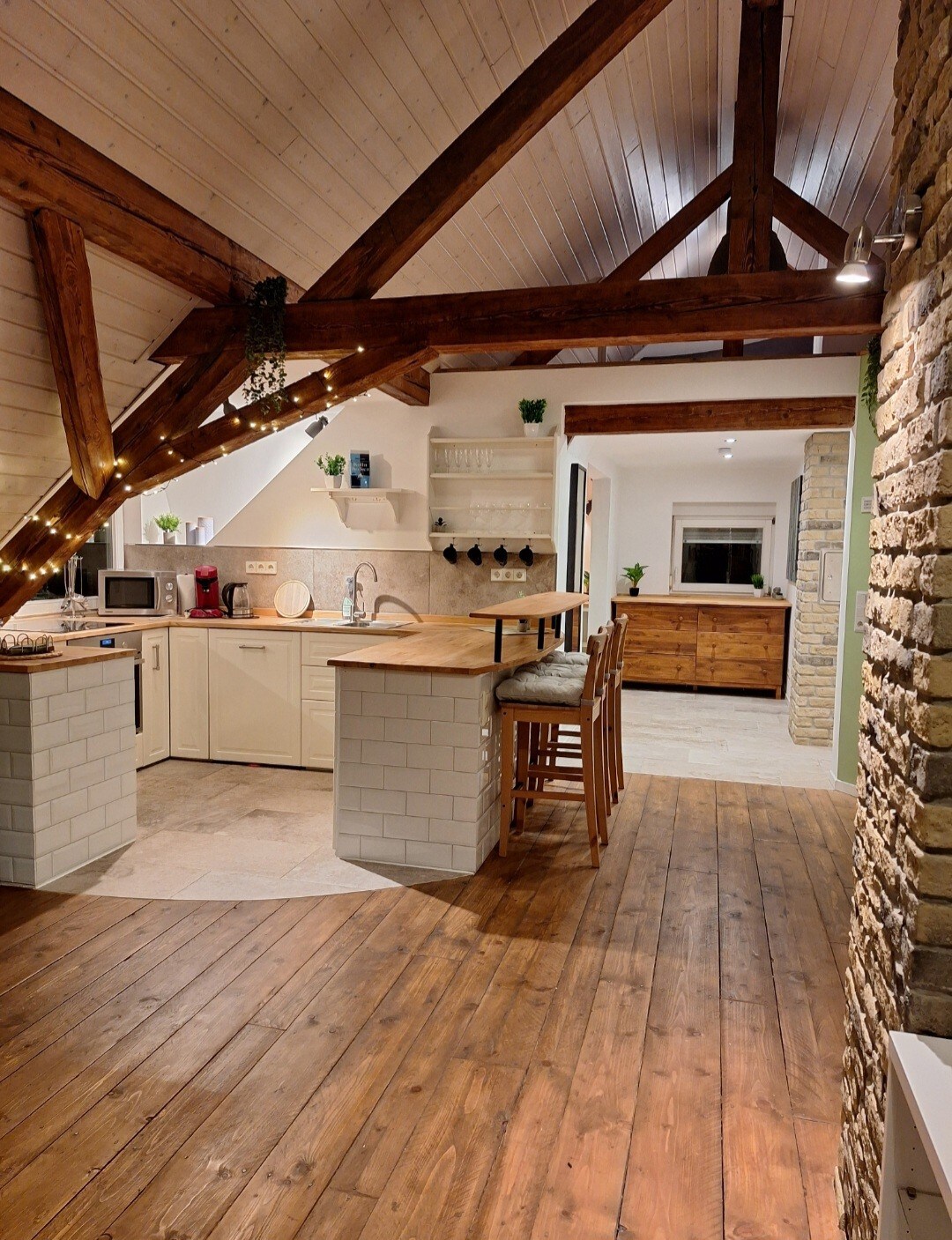 "Go háirithe anois, níl le déanamh agat ach dul amach as an gcathair agus isteach faoin tuath ." Tá an t - árasán suite ar urlár uachtarach tí atá athchóirithe go hiomlán agus a théann siar go 1745. Feistis nua - aimseartha, seomraí geala, leagan amach oscailte, agus 92 méadar cearnach spáis. Codlaíonn sé 1 -6 dhuine. Is féidir leat do scíth a ligean go compordach ar bhalcóin bheag. Tá rochtain trí staighre ar leith. Táimid ag tnúth le fáilte a chur roimh aíonna ar mian leo iniúchadh a dhéanamh ar ár réigiún álainn Kraichgau nó é a úsáid mar stad ar a dturas.