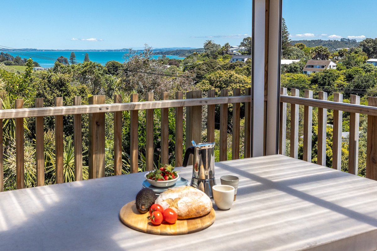 Aonad stiúideo fairsing trá retro, bealach isteach príobháideach agus radhairc fairsinge ar an aigéan go Waiheke go dtí an gaineamh trasna an bhóthair. 40 nóiméad go dtí an t - aerfort, 35 nóiméad seirbhís farantóireachta Pine Harbour go cathair Auckland in aice láimhe. Caife béal dorais, bialanna beir leat, bialann Indiach siúlóid ghearr. Siúlóidí áille, anaclanna, páirceanna réigiúnacha Omana agus Duder agus páirc rothaíochta sléibhe in aice láimhe. Trá shnámha shábháilte le haghaidh seaschéaslóireacht, cadhcáil, iascaireacht ón gcaladh. Spéartha scairdeanna ar cíos béal dorais. Is parthas beag é i ndáiríre